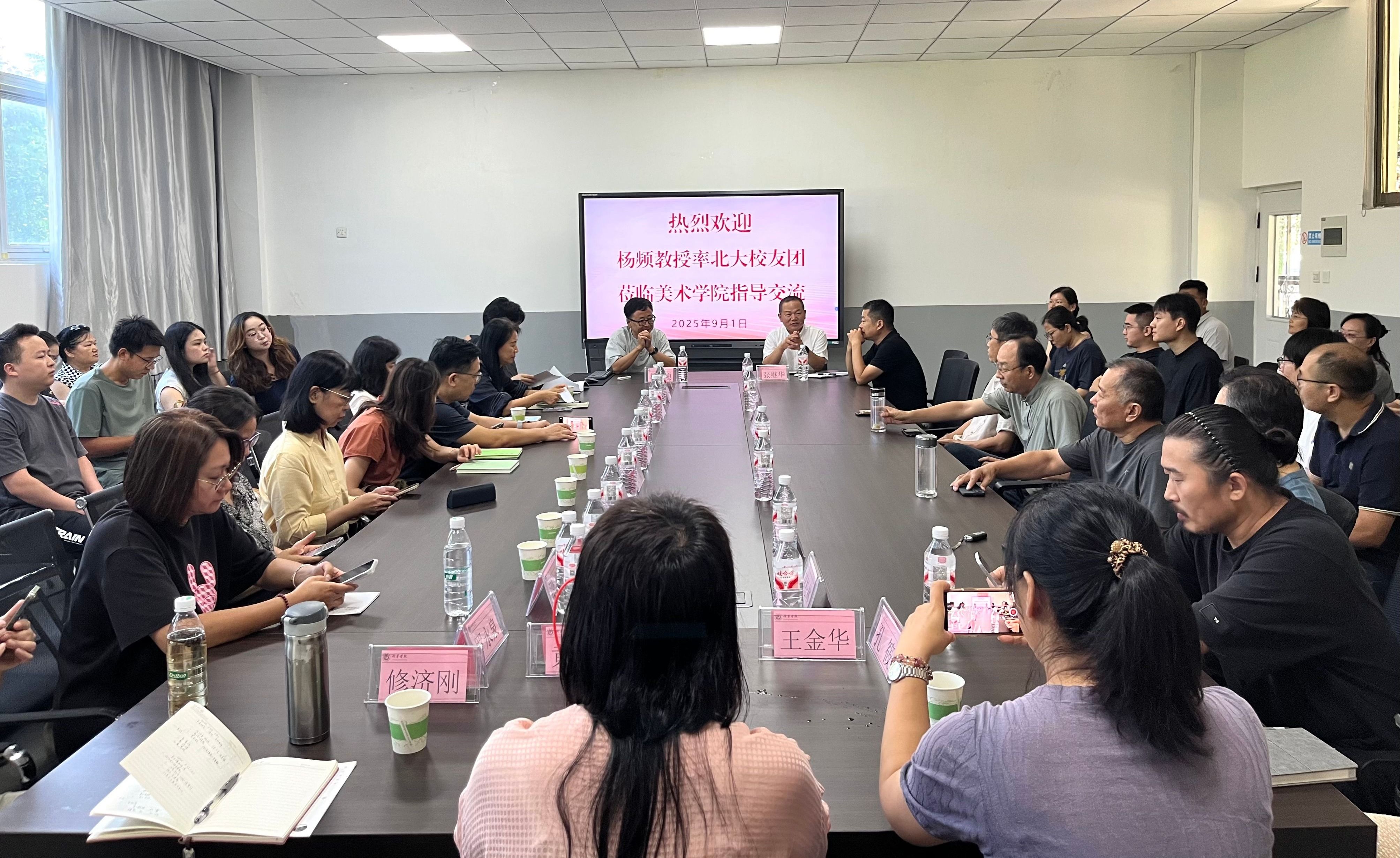 9月1日,美术学院邀请故宫博物院研究馆员、北京师范大学文学博士、中国书法家协会会员杨频教授及北大校友团队莅临美术学院展开深度交流研讨。美术学院领导班子成员及全体教师参加,美术学院院长张继华主持。