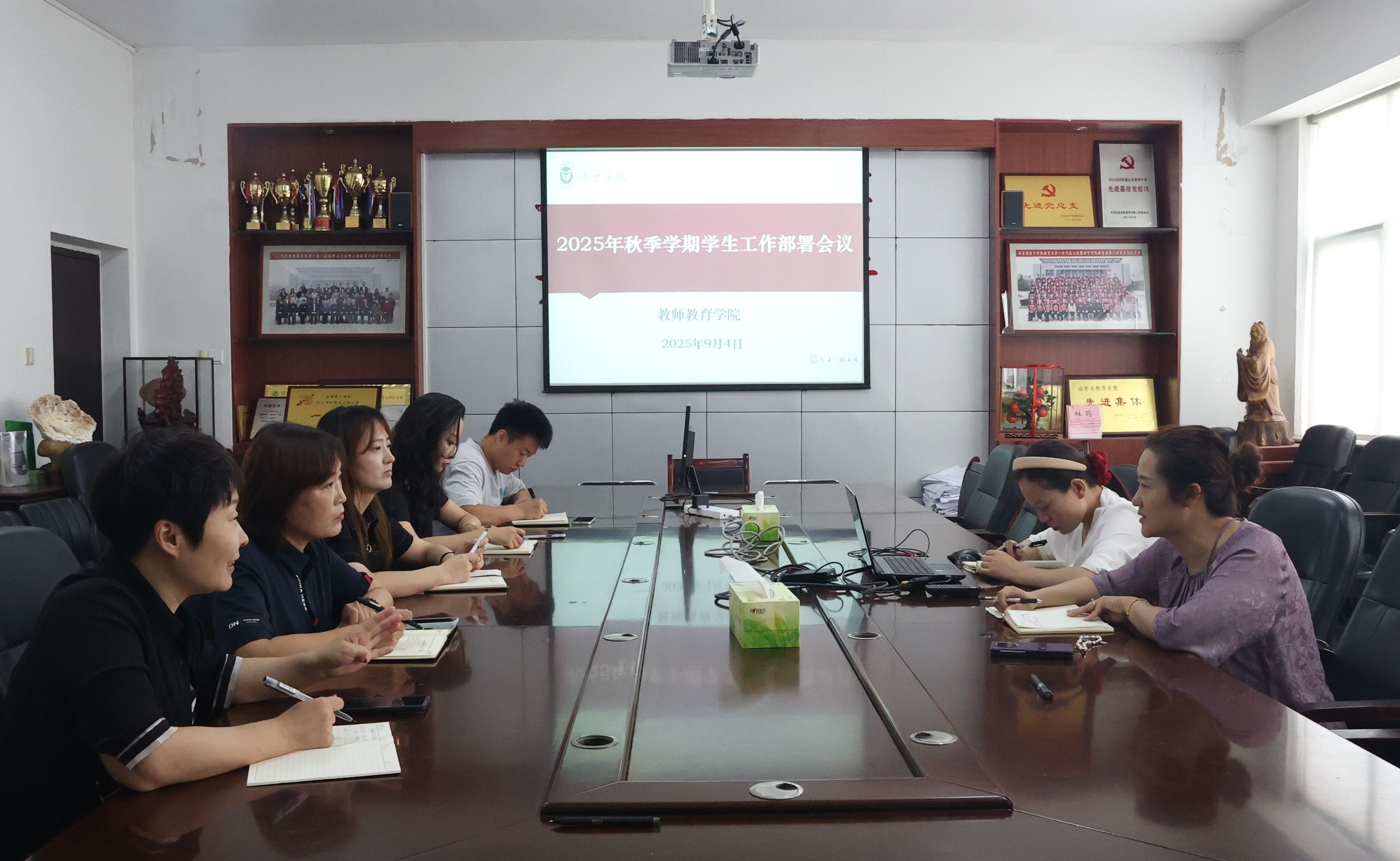 为精准谋划新学期学生工作重点,全面提升育人实效,9月4日,教师教育学院在会议室A211召开2025年秋季学期学生工作会议。教师教育学院党委副书记杜鹃、全体辅导员参会,会议由该院团委书记徐艳艳主持。