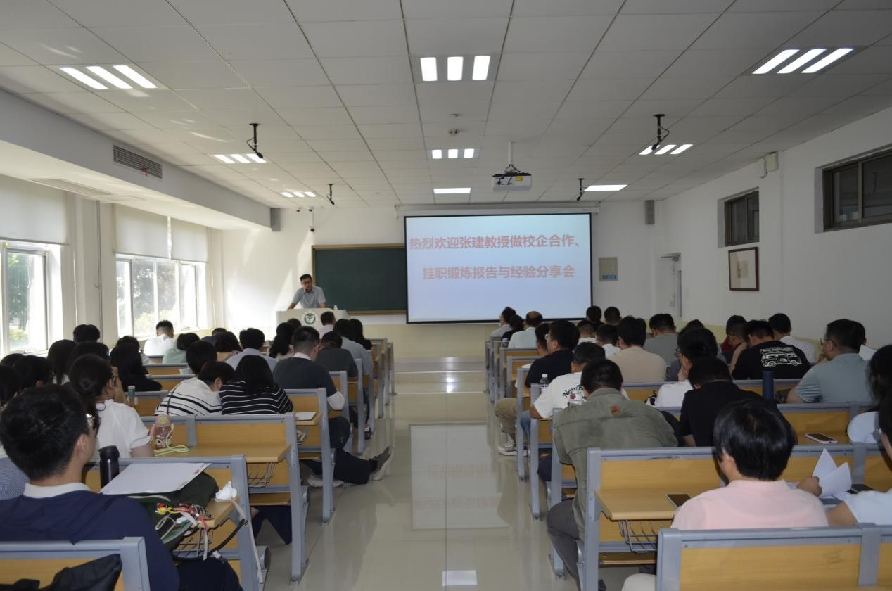 会议特邀实验教学与设备管理中心主任张建教授为全体教师做了《关于校企合作、挂职锻炼经验分享》的报告。张建以自身的工作与成长经历鼓励老师们勇敢迈出校企合作的第一步,只要认定目标就要坚持下去,只要用心付出就会有收获。