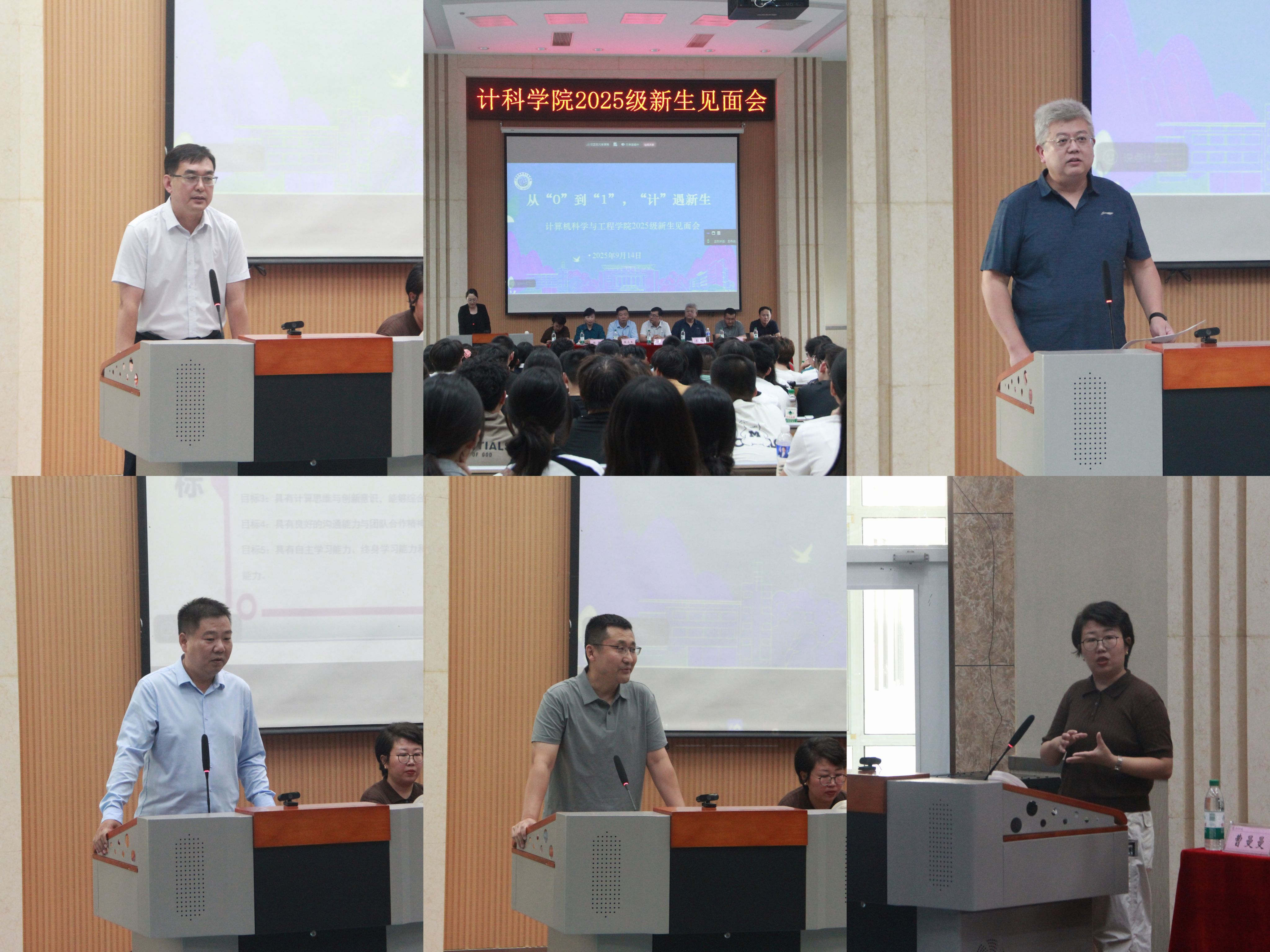 优秀在校生代表刘超、梁树帅以“过来人”视角分享经验:刘超讲解基础学习避坑技巧,梁树帅梳理“学习-竞赛-社团”平衡方法,用鲜活经历拉近与新生距离;新生代表潘俊宇则表达对大学生活的憧憬,以及“学好专业、不负韶华”的决心,展现出新生蓬勃朝气。
