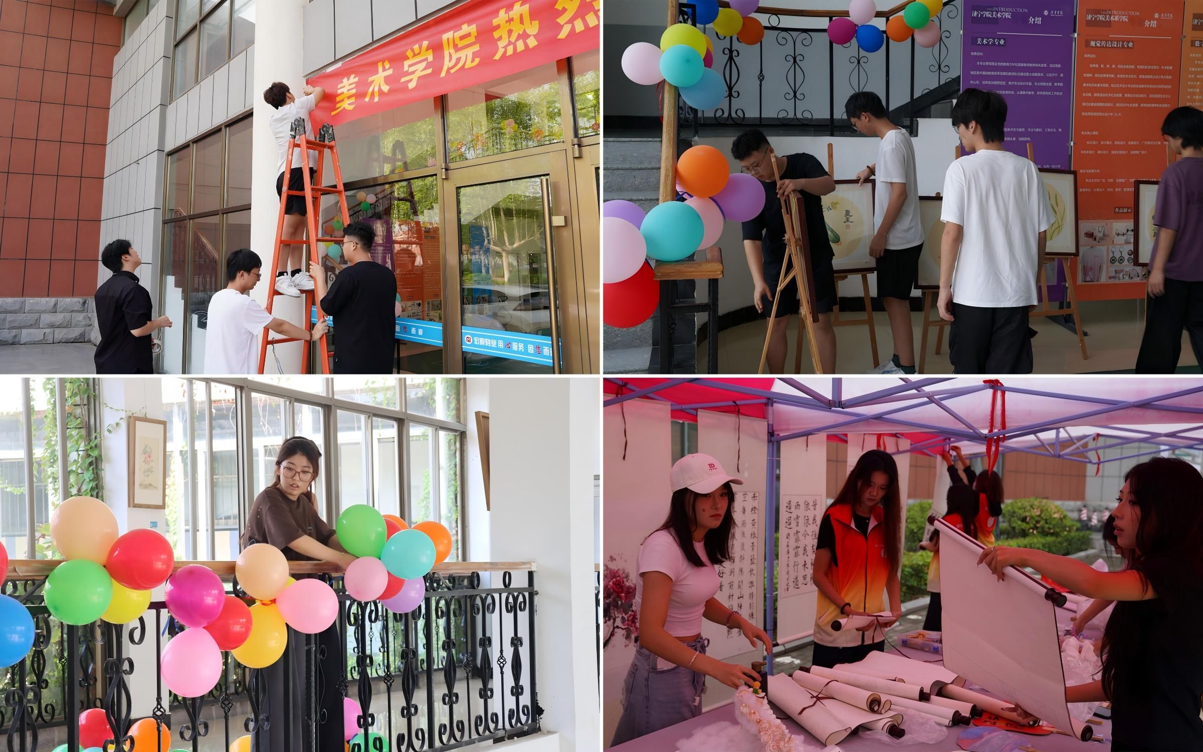 为营造“有温度、有记忆、有内涵”的入学体验感,美术学院组织学生干部、学生志愿者对新生报到区进行了精心设计,以满足青年人的独特审美需求为目标,打造出学院文化介绍、学院特色解读、文创作品展示、社团文化体验等“一站式”功能区,并通过“最美入学照”“最美班级照”“最美打卡墙”“最美许愿墙”等互动方式,让新生直观感受到“美字号”迎新的独特魅力与服务热忱,为新生更好更快地了解美术学院、融入集体生活、开启大学生涯奠定了坚实的基础。