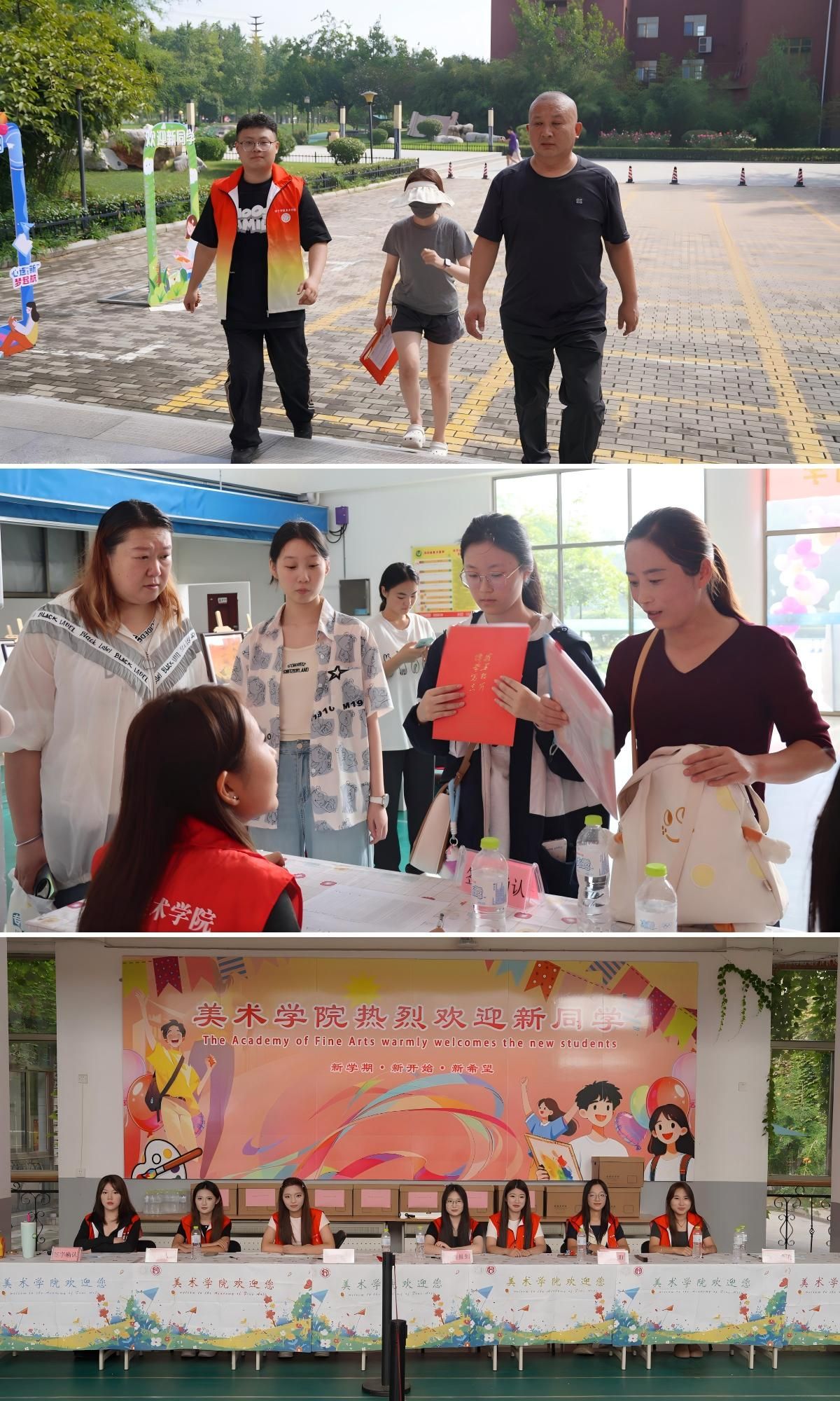 在摆渡车停靠站、钥匙发放处、新生报到区、新生公寓内,美术学院教职工、学生干部、学生志愿者用热情的微笑、亲切的问候、耐心的解释、贴心的服务迎接每一位新生与家长,一句句暖心的“美术学院欢迎你、有困难主动找我、师弟师妹我帮你、叔叔阿姨请稍等”瞬间驱散了新生与家长路途的疲惫感、入学的焦虑感、异地的陌生感,整个报到流程都充满了“奉献、友爱、互助、进步”的志愿精神,让新生与家长真真切切地感受到美术学院大家庭的温暖照护。