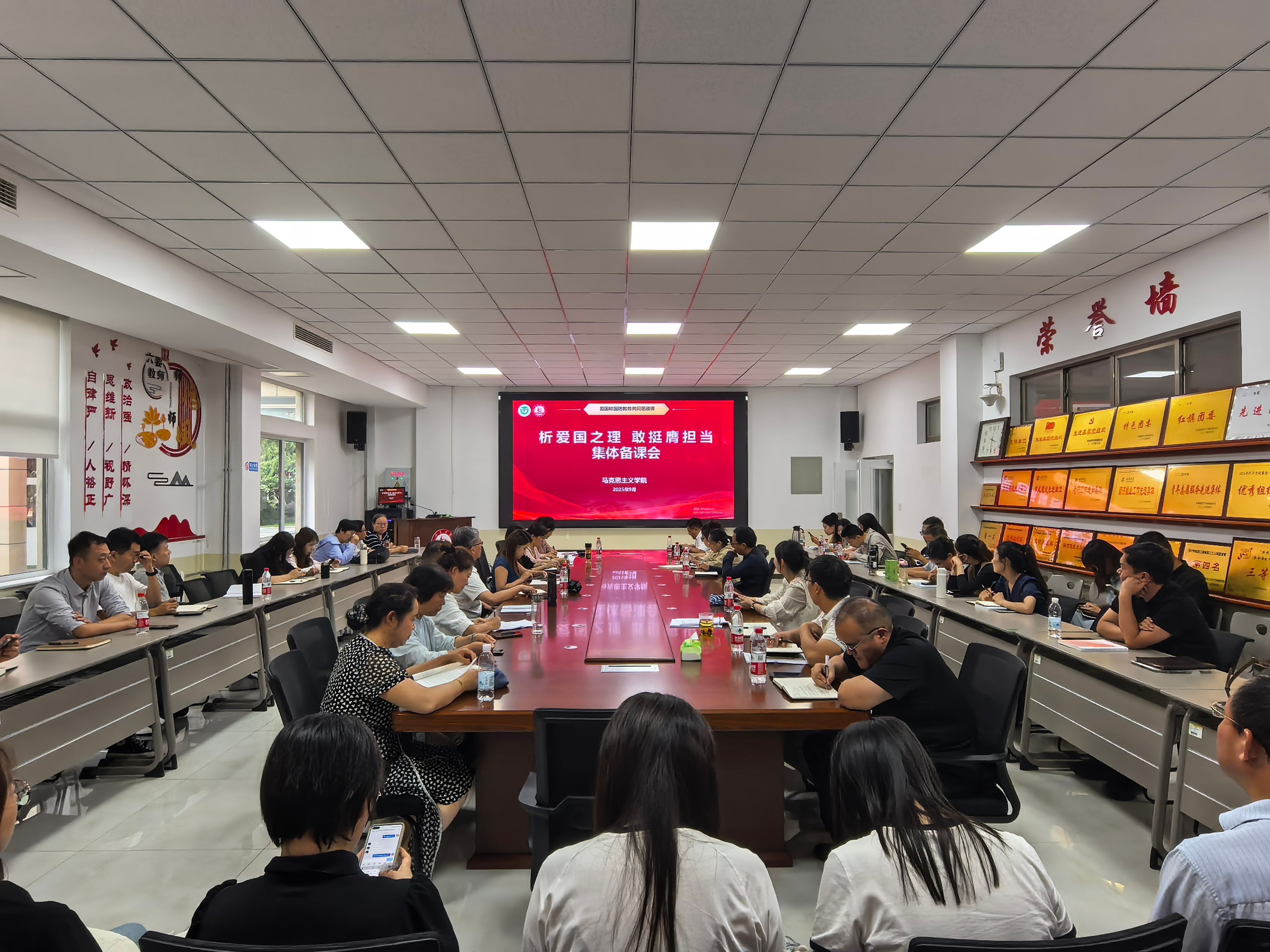 为深入贯彻落实2025 年山东省全民国防教育工作安排,扎实推进“大思政课”建设,9月18日下午,学校在马克思主义学院会议室举行爱国和国防教育共同思政课集体备课会。教务处、马克思主义学院相关负责同志,承担讲授任务的全体思政课教师、辅导员和班主任参加了此次集体备课会。备课内容围绕 “探理明意”“追根溯源”“廓清认知”“笃实践行”四个议题开展。