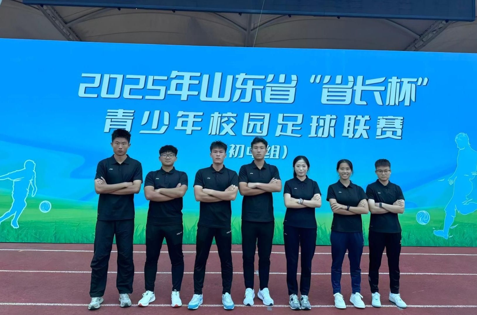 9月15日至21日,2025年山东省“省长杯”青少年校园足球联赛(初中组)在临沂收官。作为全省首次覆盖全学段的校园足球顶级赛事,本次比赛吸引16地市顶尖球队参赛,我校体育学院7名国家一级足球裁判员学子受邀执裁,以零争议的精准判罚践行“廉洁体育”理念,赢得组委会、参赛队伍与观赛群众的高度认可。