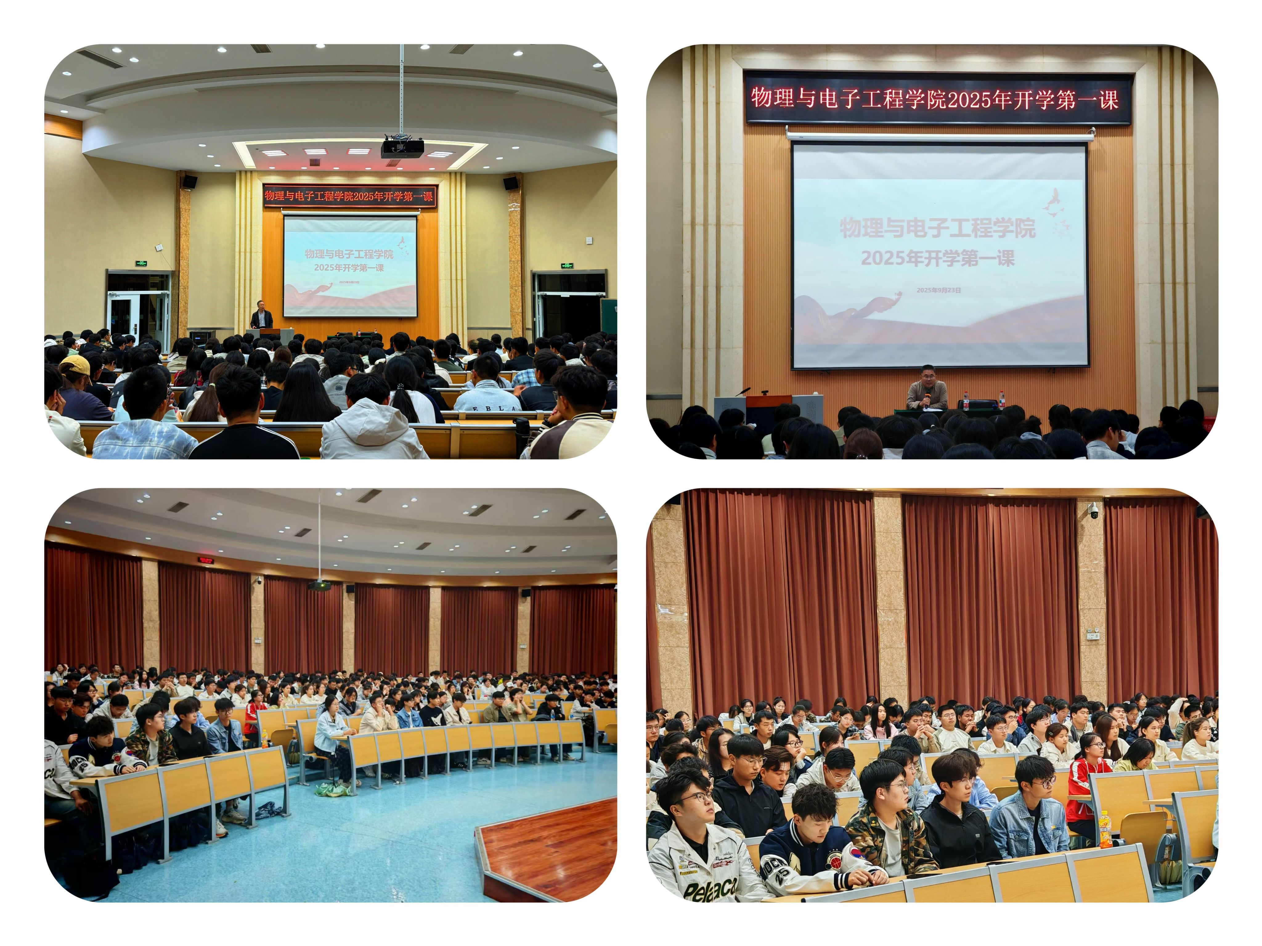 为帮助2025级新生快速适应大学环境、明晰学业目标、规划成长路径,树立积极正向的思想观念,9月23日晚,物理与电子工程学院在8号楼报告厅开展2025年新生开学第一课。学院党委书记卫建勋、院长岳现房先后为新生授课,2025 级全体新生齐聚一堂,开启大学成长新征程。