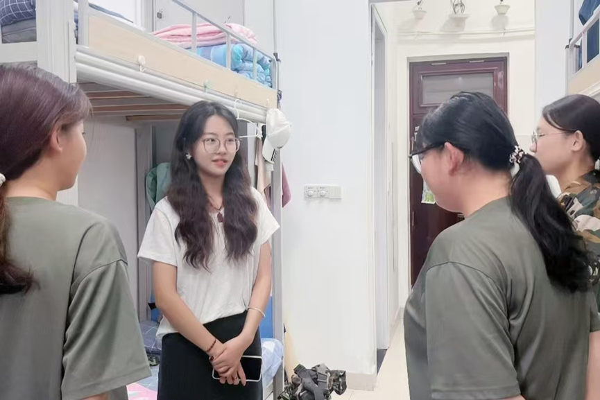 25电子信息工程1班带班高艳涛的耐心藏在细节里:军训集合通知标注关键信息,还私信提醒易漏看的同学;饭点前叮嘱“补充体力”,降温时提醒“添衣保暖”,细碎关心织成新生的“安心网”。