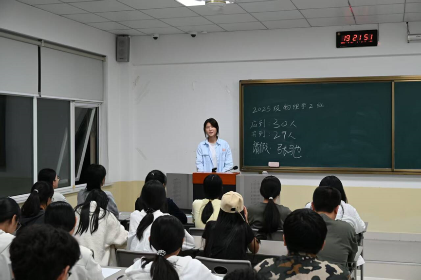 25物理学1班带班张亚楠则从“破冰”与“规划”双管齐下:先主持自我介绍环节,以自身经历鼓励新生分享兴趣,快速拉近距离;随后对照专业培养方案,拆解选课流程、梳理优先级,帮新生理清大学学习“第一份清单”。
