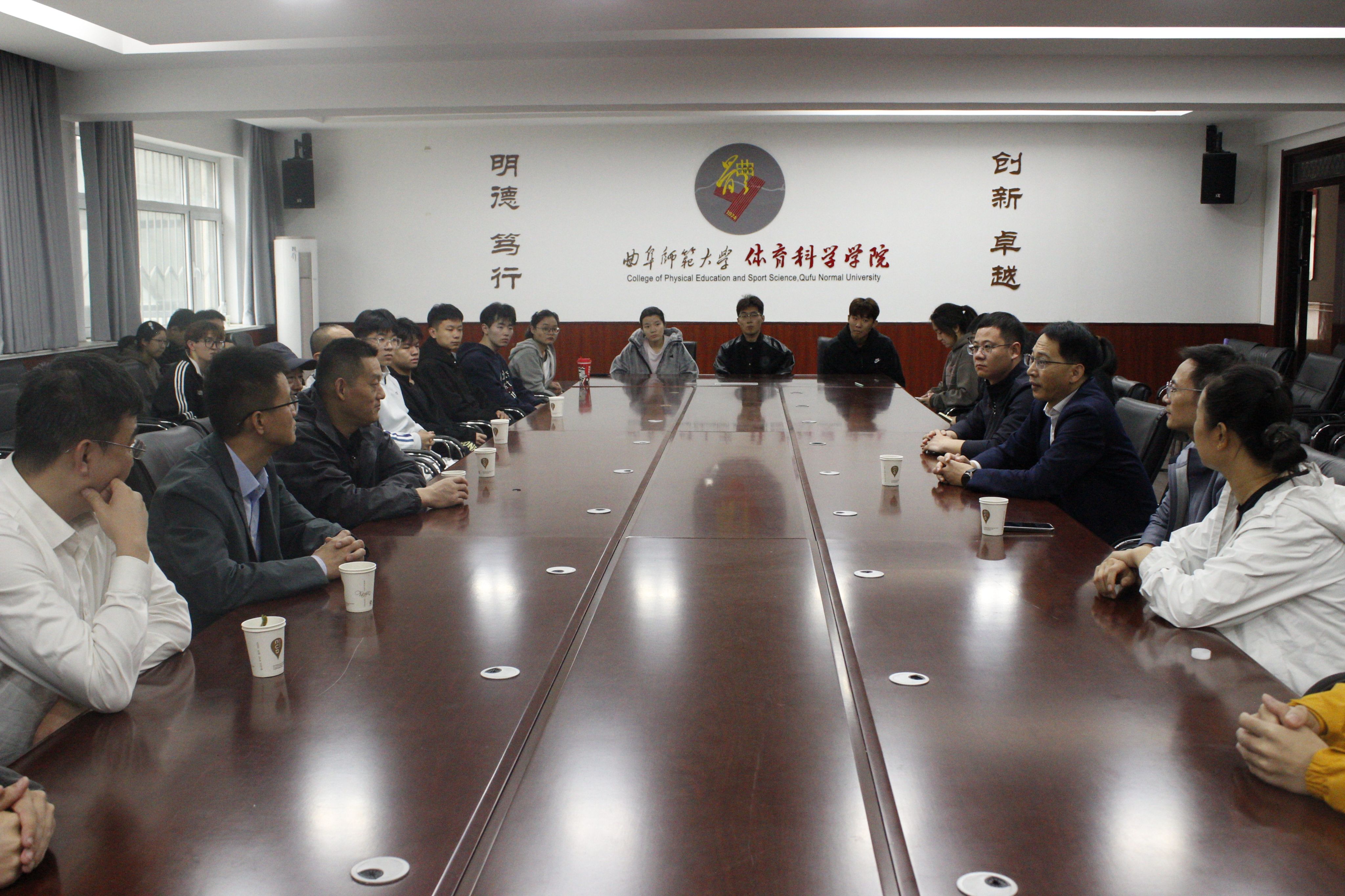 许怀祥对体育学院一行表示欢迎,简要介绍了曲阜师范大学在体育学科建设、竞技人才培养方面的成效。两校师生围绕“羽毛球教学训练模式”“校园体育赛事组织”“体育人才培养”等话题展开座谈,并进行了羽毛球技艺的交流学习。