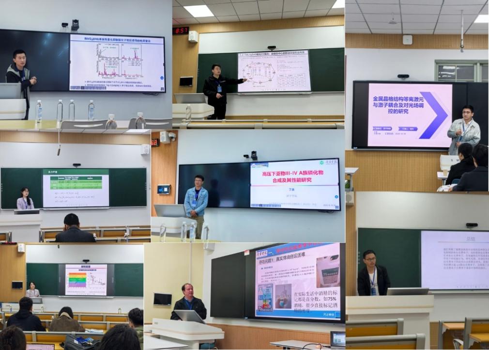 岳现房受邀主持大会报告,并在院长论坛中做亚星在线登录官网物理与电子工程学院发展规划报告1场。参会教师杨连武、袁海颖、张宜同、孙万梓、丁浩、高得鲁、田元、黄芮分别在物理教育研究、凝聚态物理、原子与分子物理、理论物理和光物理等分会场做分会报告9场。在为期两天的会议中,学院教师和与会专家就科学研究、项目申请、校企合作等开展了深入的交流和研讨。