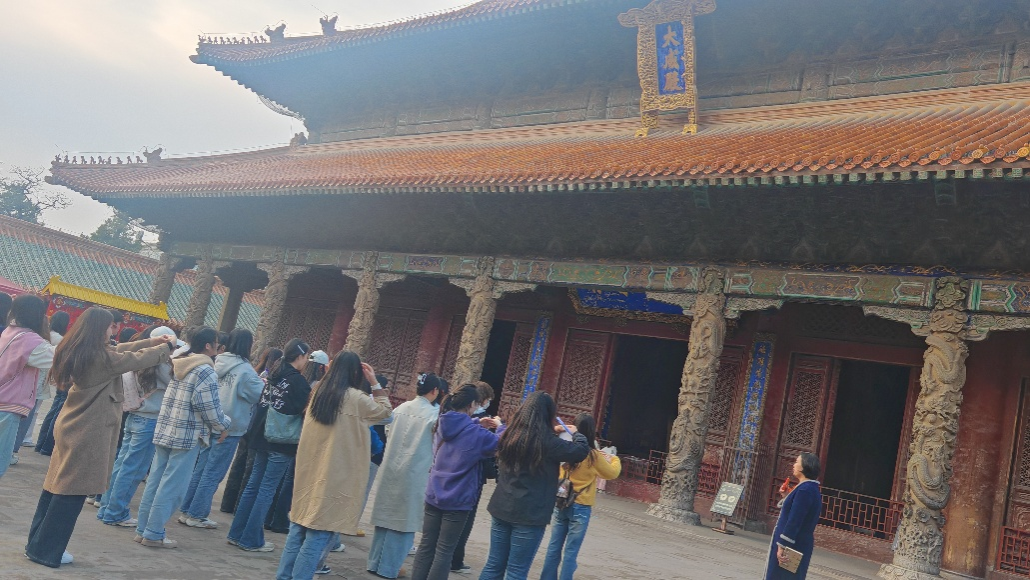 为着力培育“懂文化、会翻译、能传播”的复合型外语人才,助力地方文化国际传播,深化《孔孟之乡地域文化翻译》课程教学改革,10月23日,外国语学院以“理论+实践”为路径,组织该课程学生前往曲阜孔庙开展特色实践教学活动,并特别邀请书香曲阜研学基地资深讲师李学欣进行深度讲解,为外语专业学子打造了一场 “行走的文化翻译课堂”,助力其在文化现场提升翻译实践能力。