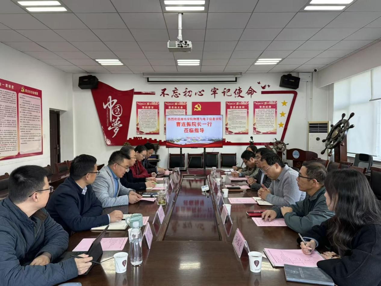 10月21日,潍坊学院物理与电子信息学院院长曹连振、副院长韩锴、院长助理杨阳等一行6人到物理与电子工程学院调研交流,学院党委书记卫建勋、院长岳现房、副书记辛允东等参加了交流会,交流会由岳现房主持。