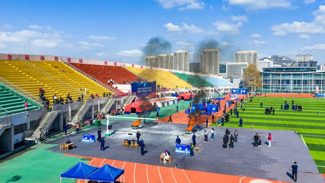 2025年山东省首届大学生消防安全技能大赛于9月份启动,收到活动通知后,学校安全保卫处、校团委迅速响应,进行了广泛的动员和周密的组织部署。本次比赛由山东省教育厅、山东省消防救援总队主办,以“消防青春志,安全家国行”为主题,来自全省51所本科高校、72所职业院校的984名参赛队员、领队、指导老师,共计1200余人参加了本次比赛。比赛现场,面对熊熊烈火,他们果断提起灭火器,精准扑灭火苗;伤员转运环节,他们默契配合,平稳迅速穿越障碍区。每一个动作背后,都是反复训练形成的肌肉记忆;每一次顺利闯关,都是“懂消防、会操作、能应急”能力的生动体现。从“要我安全”到“我要安全”,消防安全意识的转变在这场大赛中悄然发生。