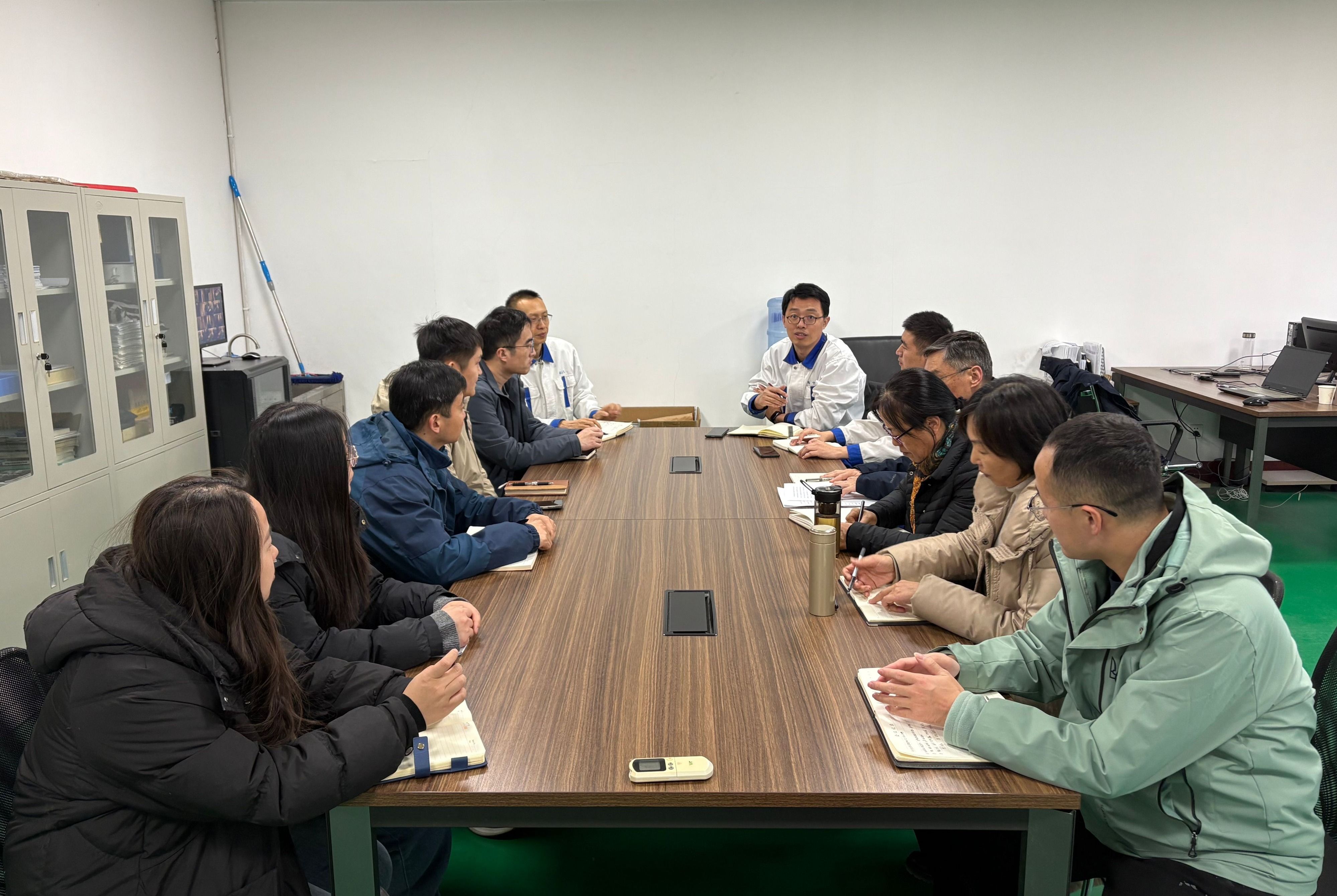 在活动中,博士团实地参观了山东胜利生物的生物发酵生产车间及成品检测中心,沉浸式了解从菌株筛选、发酵调控、提取纯化到成品制备、质量检测的全链条生产研发流程,并围绕发酵工艺优化、绿色提取技术应用、产品质量控制标准等环节,与企业技术人员展开深入交流。随后,就实习实践课程、企业导师聘任、科研合作模式等议题深入研讨,期待双方搭建优质科研实践平台,通过校企协同攻关,在科研项目申报、成果转化落地、人才共育等方面深化协作,真正打通“科研—转化—应用”链条。
