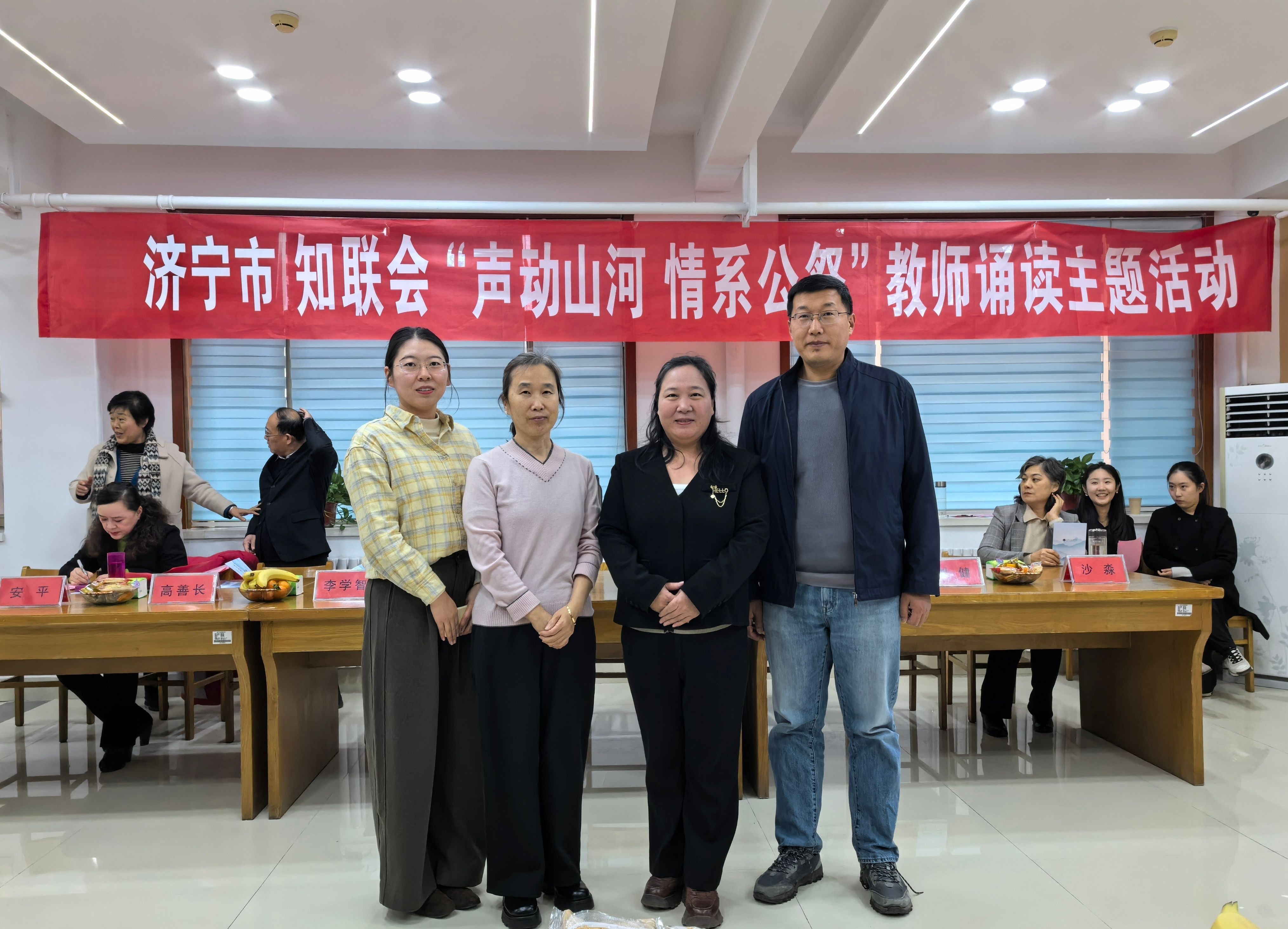 我校知联会副会长孔德凌带队,校图书馆馆长刘欣及会员代表共五人组成代表团队,全程参与活动组织与现场互动。活动中,我校知联会成员精彩表演,成为现场亮点。在“经典回响”诵读展示环节,知联会会员孔德凌、李永、李倩三位博士共同演绎先秦战歌《诗经・秦风・无衣》。三位博士以铿锵有力的语调、饱满真挚的情感,深刻传递出同仇敌忾、共赴国难的民族精神,引发全场强烈共鸣,充分展现我校党外知识分子深厚的文化底蕴与强烈的家国情怀。“教育心声”故事分享环节,我校知联会积极参与现场交流,结合活动主题分享我校党外知识分子在教育教学、科研育人中的实践感悟,为弘扬爱国主义精神、推动书香校园建设建言献策。刘欣在点评发言中,代表协办单位从教育工作者使命担当角度发声,强调“铭记历史是为了更好地前行,教育工作者要将家国情怀融入立德树人全过程”,其观点得到济宁市知联会及各参会单位的高度认可,进一步扩大我校知联会的影响力。