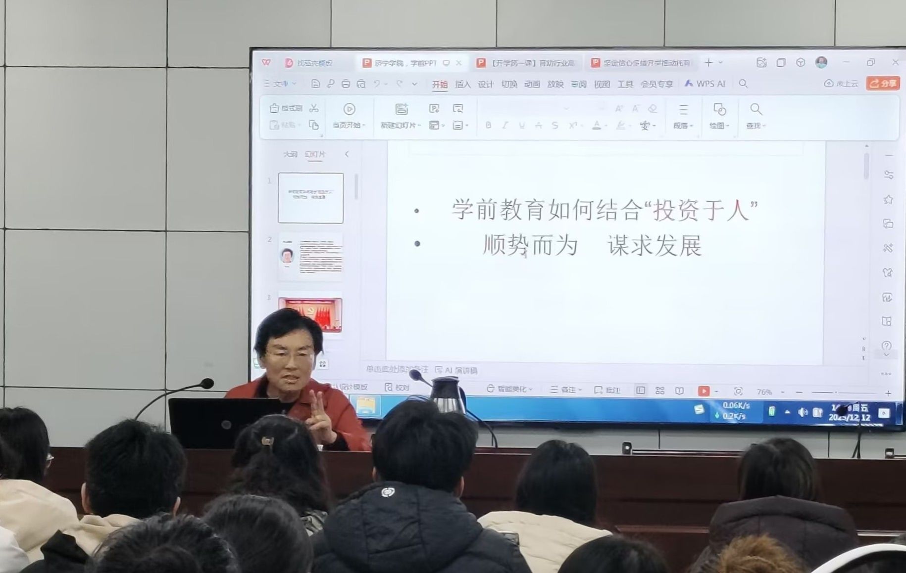 讲座环节,陈颖以《学前教育如何结合“投资于人”顺势而为 谋求发展》为题,立足济宁市作为全国婴幼儿照护服务示范城市的实践基础,系统阐述了托育服务体系建设与托幼一体化改革的创新经验与显著成效。报告深入分析了当前行业发展的新动向与人才需求的新变化,帮助学生拓宽专业视野,深刻认识在“托幼一体化”国家战略背景下所面临的职业发展新机遇。