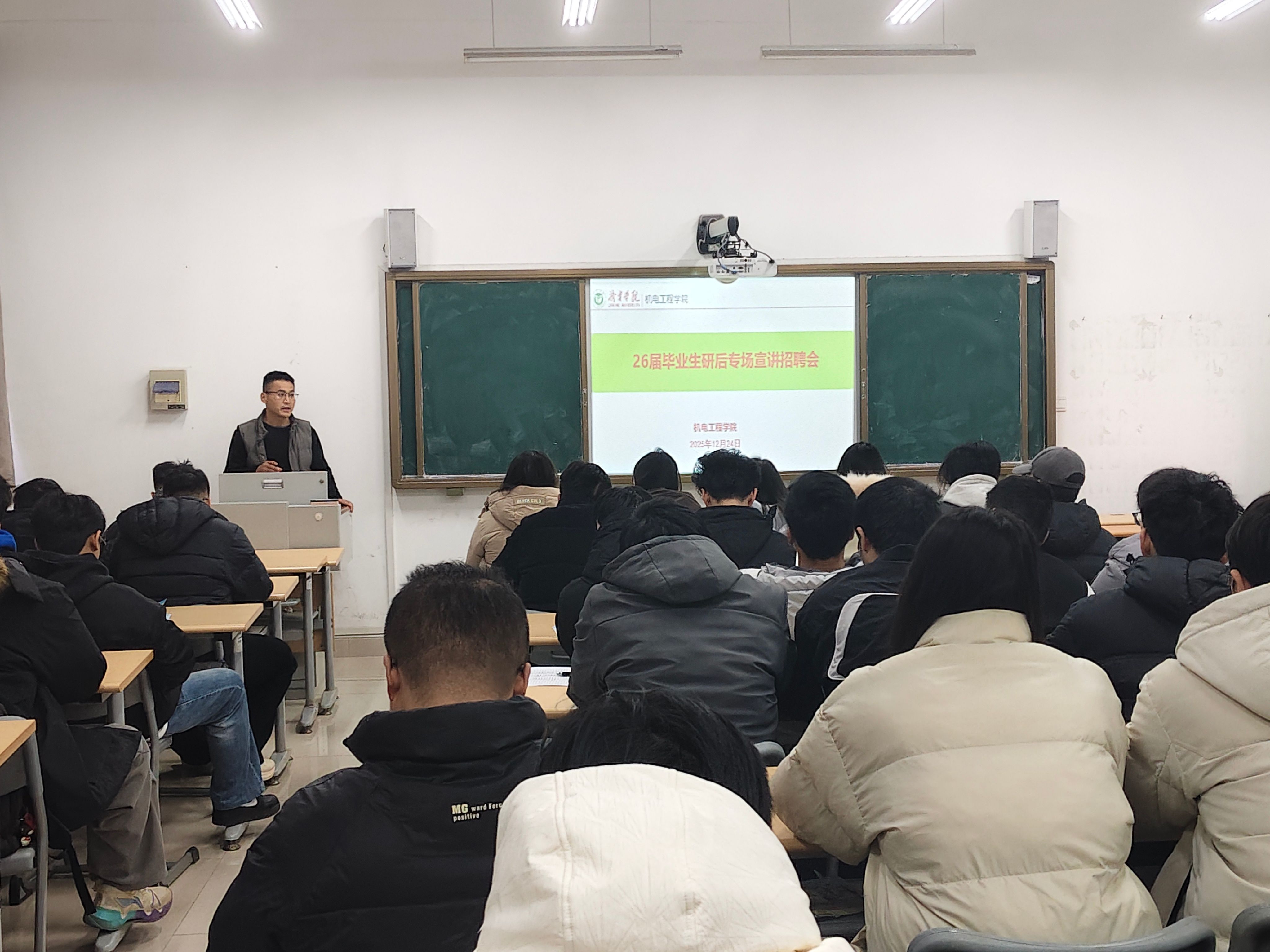 12月25日,机电工程学院抓住考研后的关键时间节点,分别在应用型人才培养基地和曲阜校本部召开了机电工程学院2026届毕业生研后宣讲招聘会,切实促进学院毕业生实现高质量充分就业,开阔毕业生就业视野,树立正确的就业观。