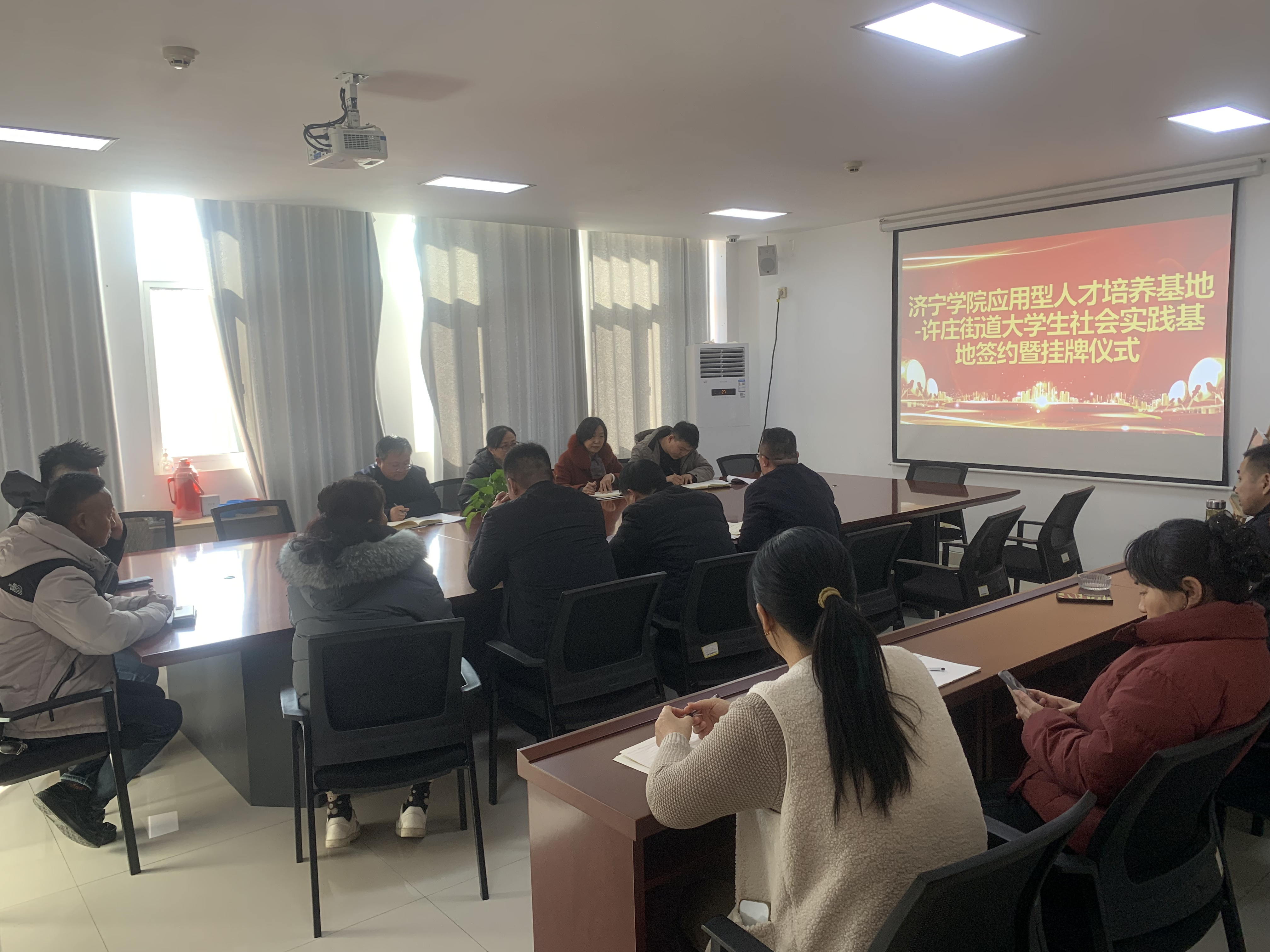 为积极探索产学研合作模式,助推学生成长与社区基层治理互促共进,12月25日下午,应用型人才培养基地与许庄街道风韵荷都社区党群服务中心举行大学生社会实践基地签约暨挂牌仪式,应用型人才培养基地主任苑壮东、副主任李爱兰、许庄街道党工委副书记王海青、风韵荷都社区社区书记魏洪兵及双方相关科室负责人参加本次活动。