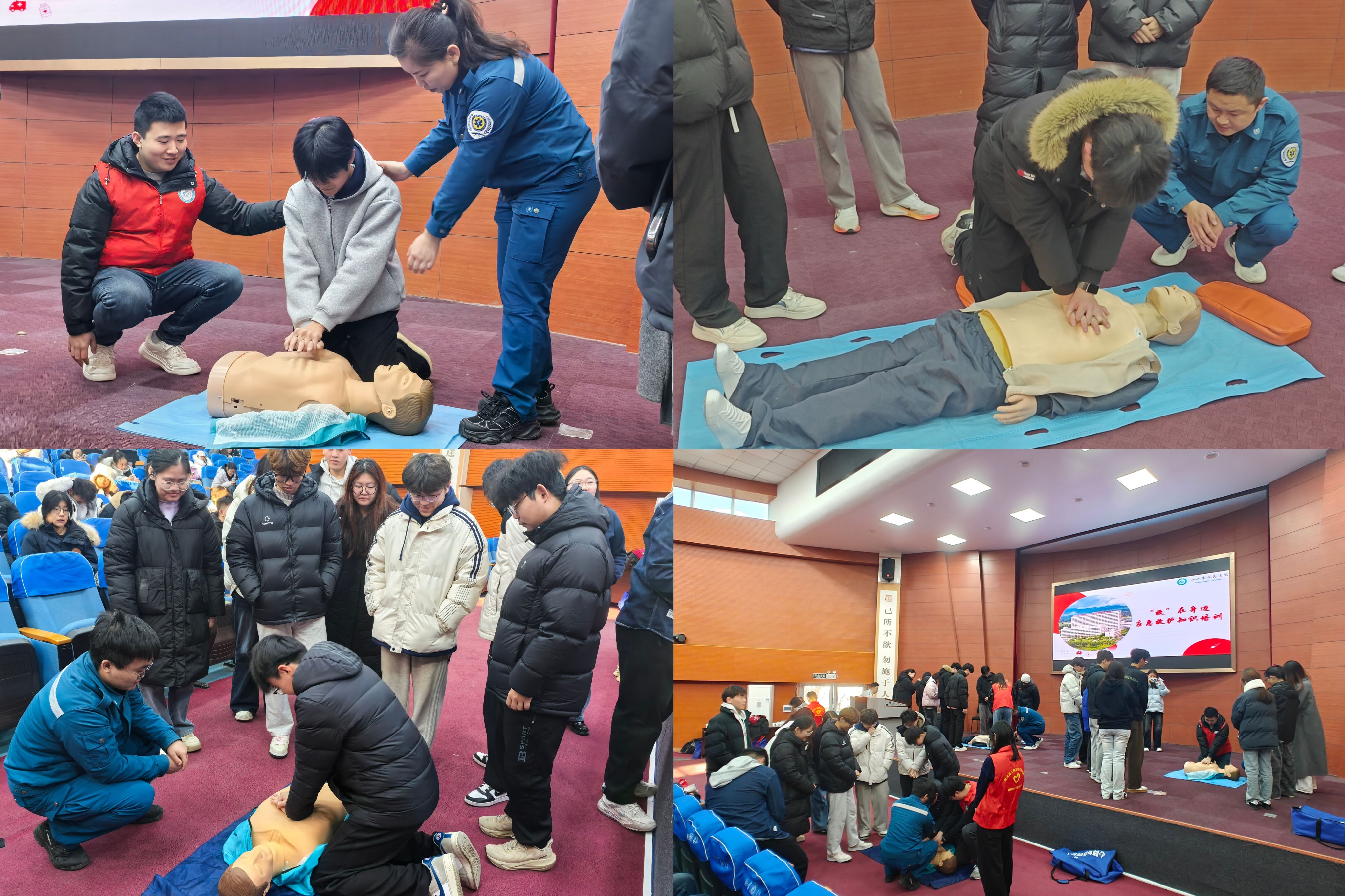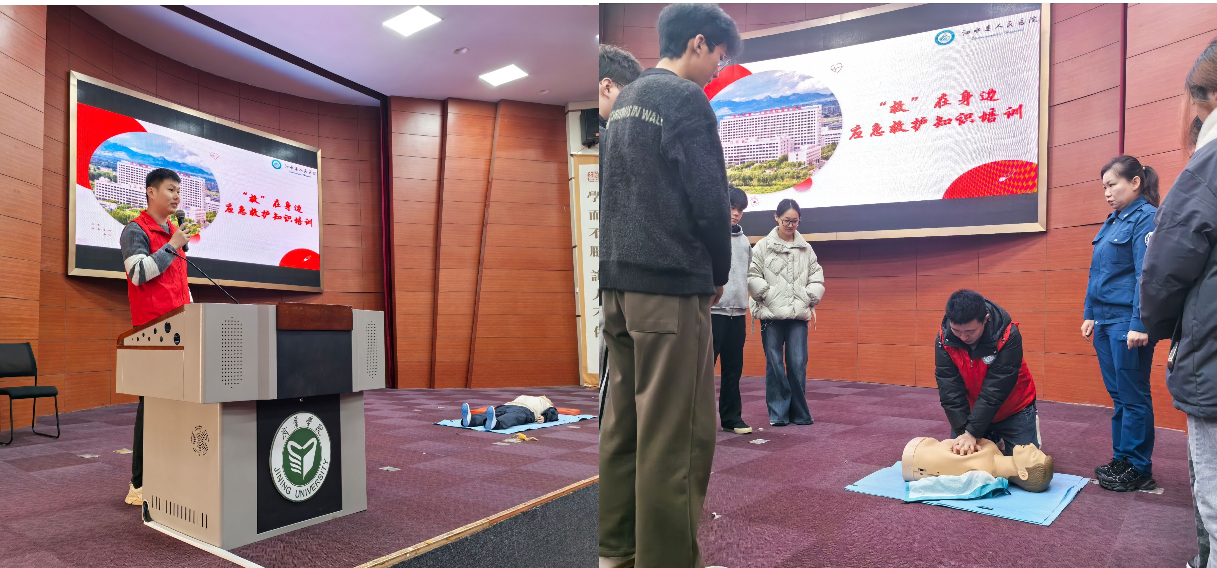 为强化青年马克思主义者培养工程的育人实效,提升大学生安全意识和应急救护能力,12月27日上午,化学化工与材料学院在理科楼报告厅举办“守护生命,‘救’在行动”应急救护专项培训。本次活动将急救技能培训纳入青马工程课程体系,面向全院学生开放学习。学院特邀泗水县人民医院“救”在身边公益宣讲团进行专业指导。辅导员丰雪情主持活动,青马工程全体学员及各年级学生代表共计200余人参加。