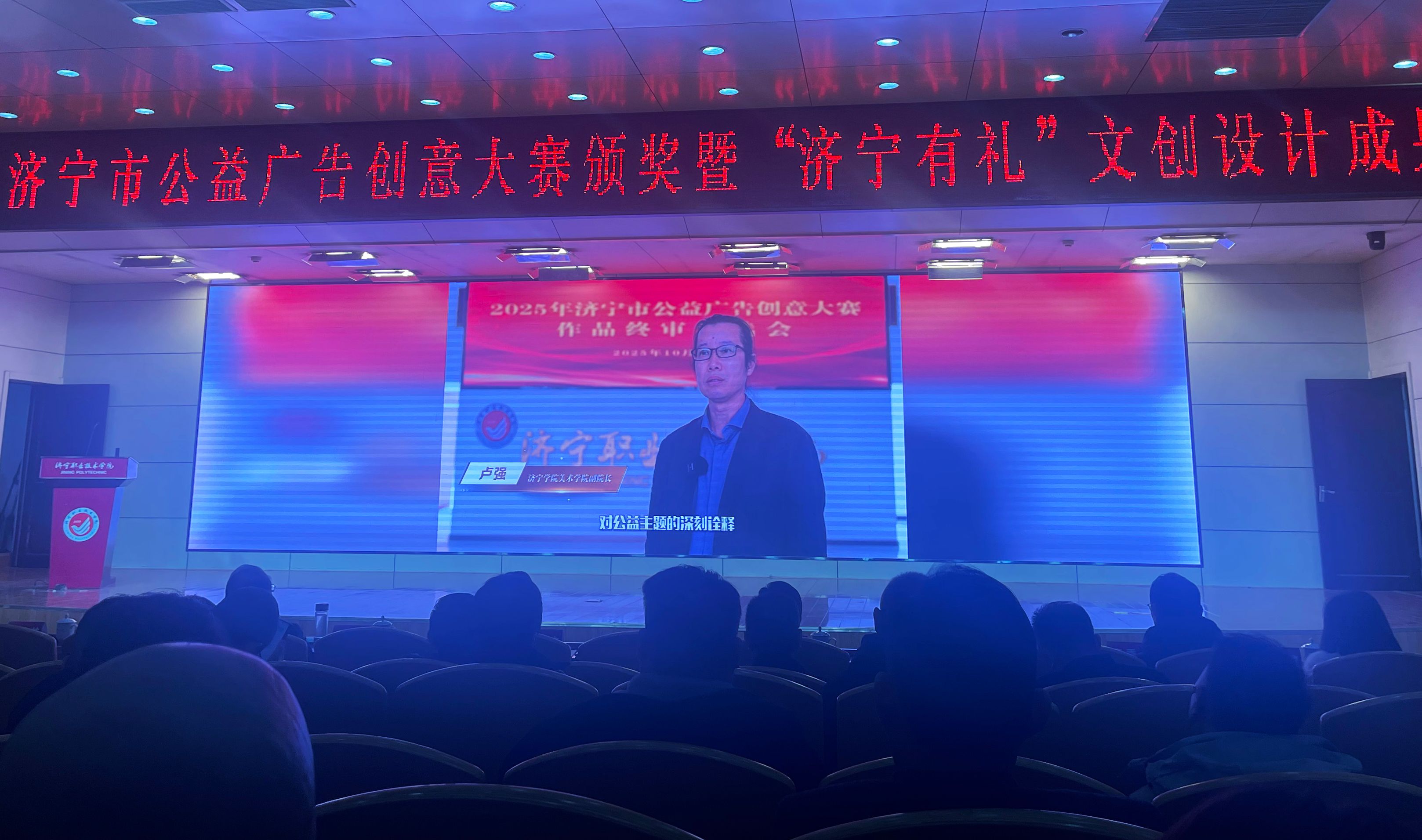 12月30日,济宁市公益广告创意大赛颁奖仪式暨“济宁有礼”文创设计成果展在济宁职业技术学院举办,美术学院师生代表到场观摩学习,学术副院长卢强担任本次大赛评委。