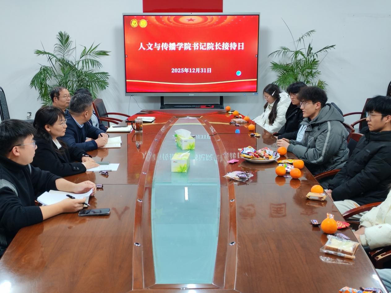 12月31日,人文与传播学院书记院长接待日活动在会议室开启。学院党委书记王永超、院长张颖慧、党委副书记徐俊凯等学院领导与各专业学生代表齐聚一堂,以面对面交流的形式搭建沟通的桥梁。