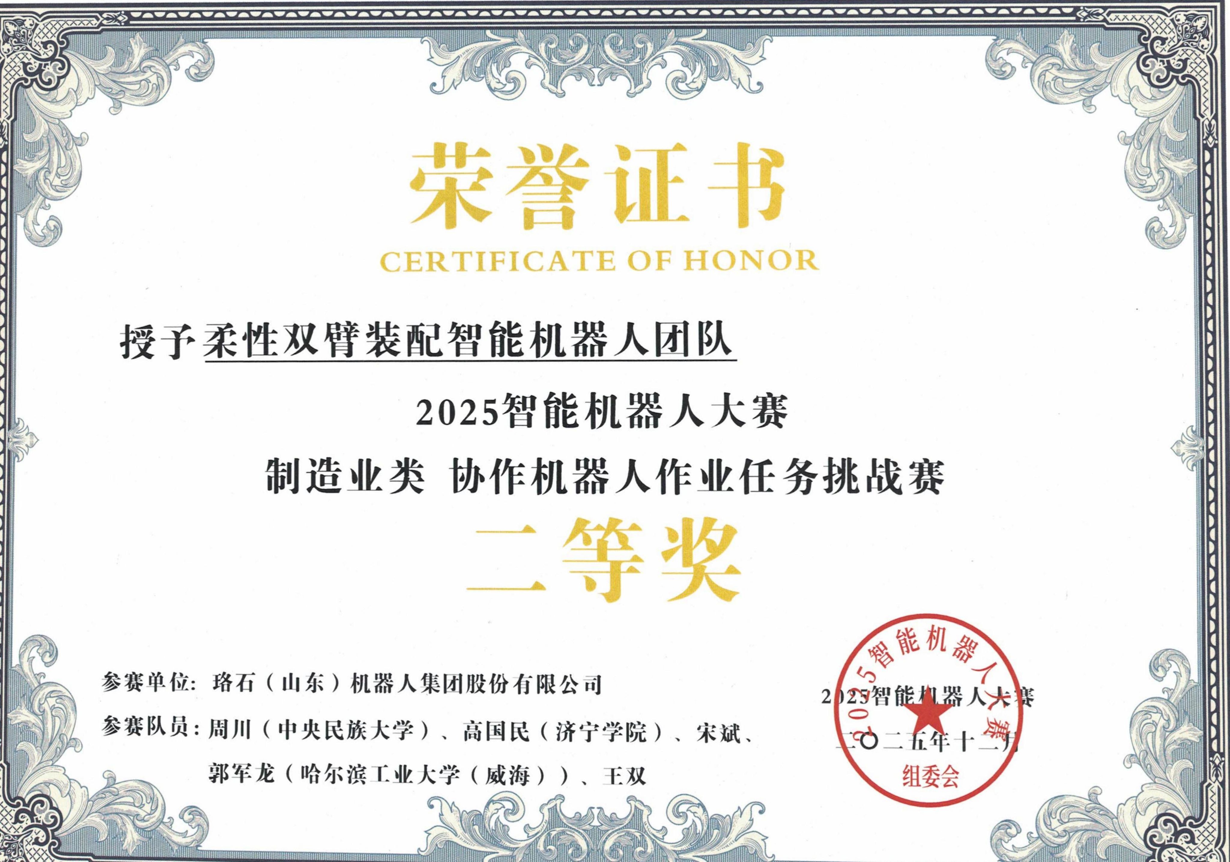 近日,2025智能机器人大赛——制造业类协作机器人作业任务挑战赛决赛成绩公布,我校机电工程学院教师、青年博士高国民参与的珞石(山东)机器人集团股份有限公司作品在比赛中荣获二等奖。