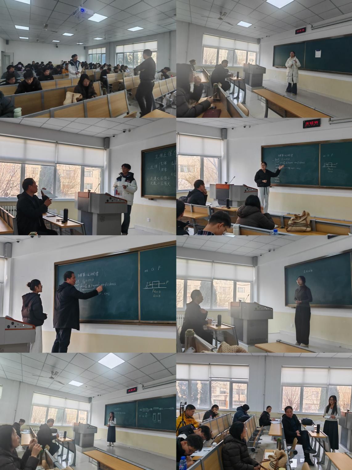 林海波以“我们都在努力奔跑,我们都是追梦人”开篇,以“马拉松比赛”为生动喻体,创新性地从赛前准备、赛中发挥、赛后总结三个维度层层展开,系统梳理备赛参赛过程中的12个核心问题,提炼出26条实用的宝贵建议。他紧密结合山东省师范类高校学生从业技能大赛评审标准与物理学科教学特色,围绕教学设计逻辑性、教学语言感染力、板书设计规范性、物理实验演示直观性等核心环节,通过典型案例剖析、实战技巧分享、常见误区警示等方式,将丰富的教学经验与赛事指导心得倾囊相授,为师生提供了兼具理论高度与实操价值的备赛方案。整场报告深入浅出、案例鲜活,诸多成功实践与典型失误案例贯穿始终,历时三个多小时,现场师生专注聆听、认真记录,学习氛围浓厚。