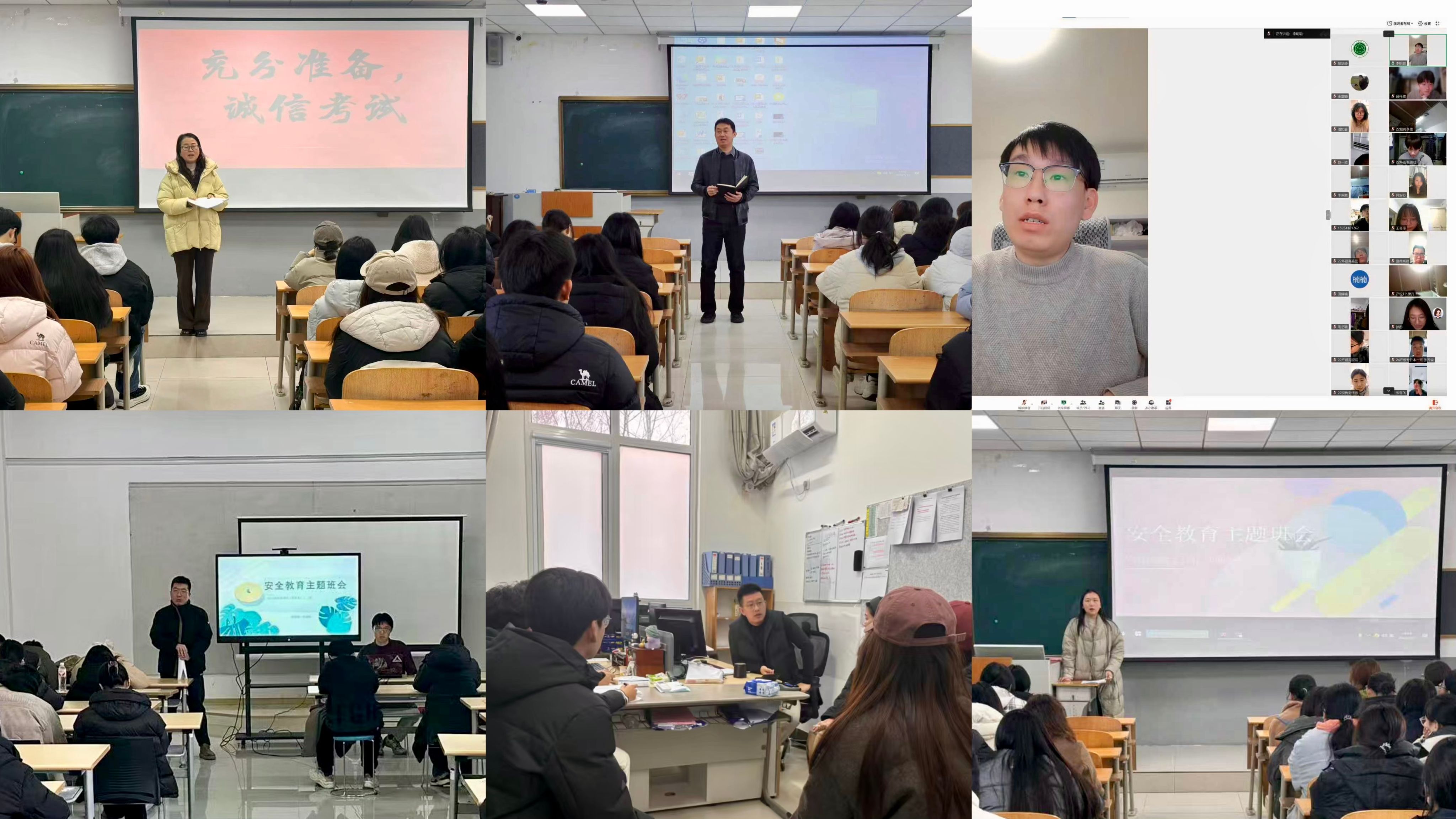 主题班会筑防线,安全诚信入人心。全体辅导员召开寒假前主题班会,既严肃强调诚信应考的学术底线,又温情叮嘱返乡旅途安全、冬季防火防盗及防诈骗等细节,引导同学们紧绷安全之弦,筑牢思想防线。