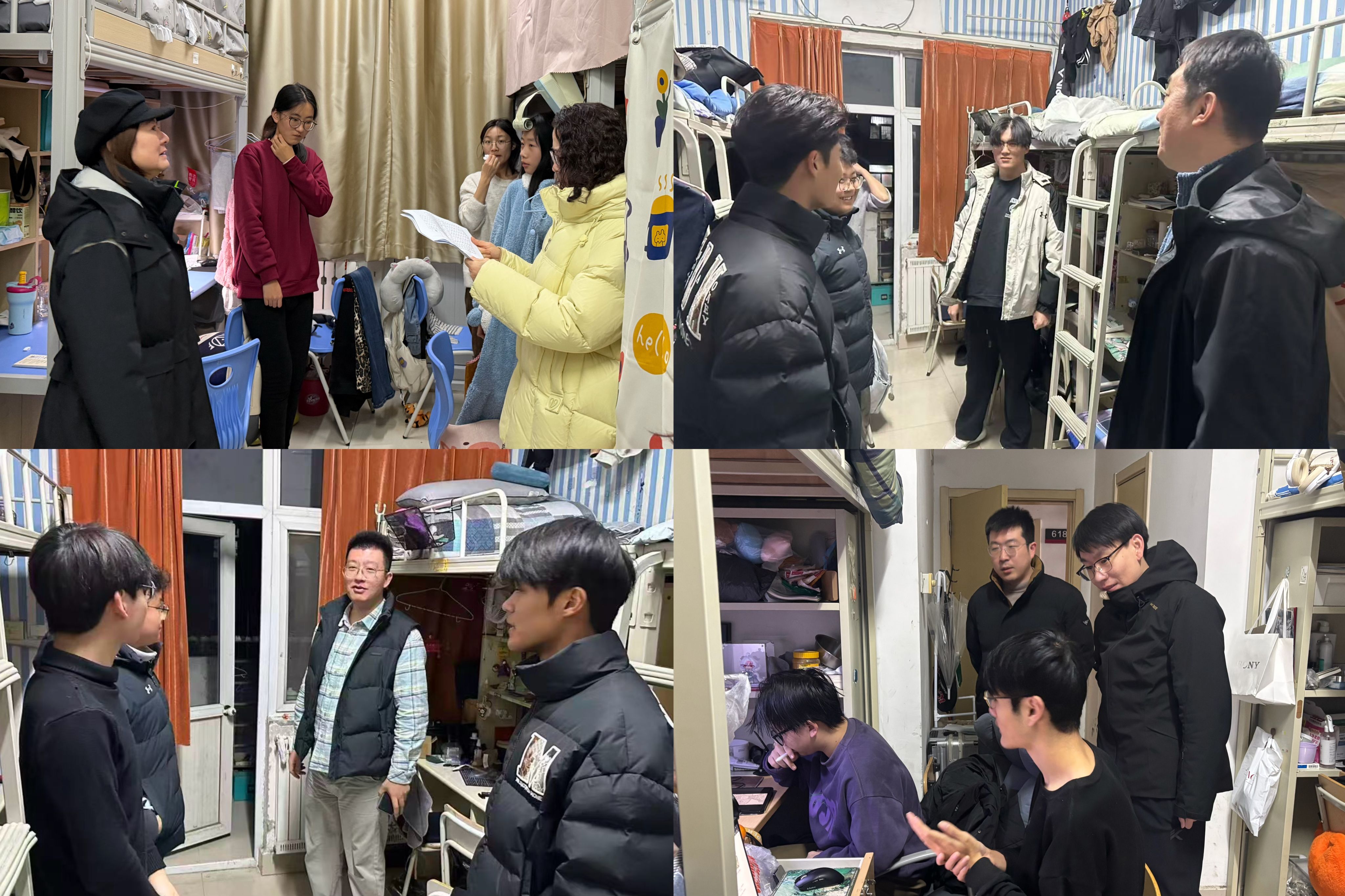 深入宿舍查隐患,温情关怀送寒冬。学院领导与全体辅导员深入宿舍排查安全隐患,营造整洁环境。走访中,杨晓青与同学们亲切交谈,细致询问学业进展与返乡安排,句句叮嘱传递了学院对学子无微不至的关怀,让寒冬充满暖意。