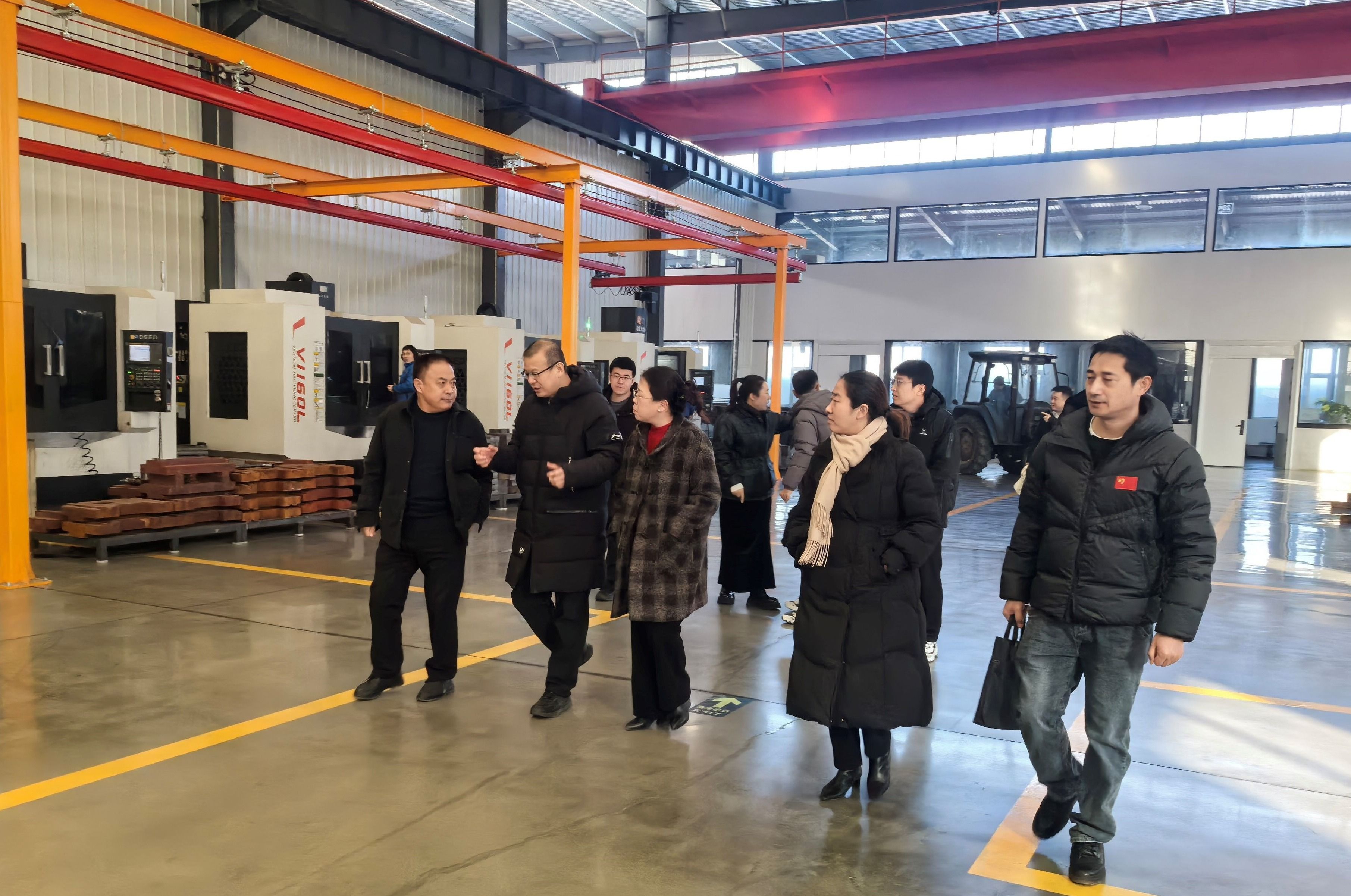 会后,张营一行实地参观了公司的设备研制中心与产品生产车间,并就技术升级、数字工厂建设、智能制造应用等方面进行了现场交流。