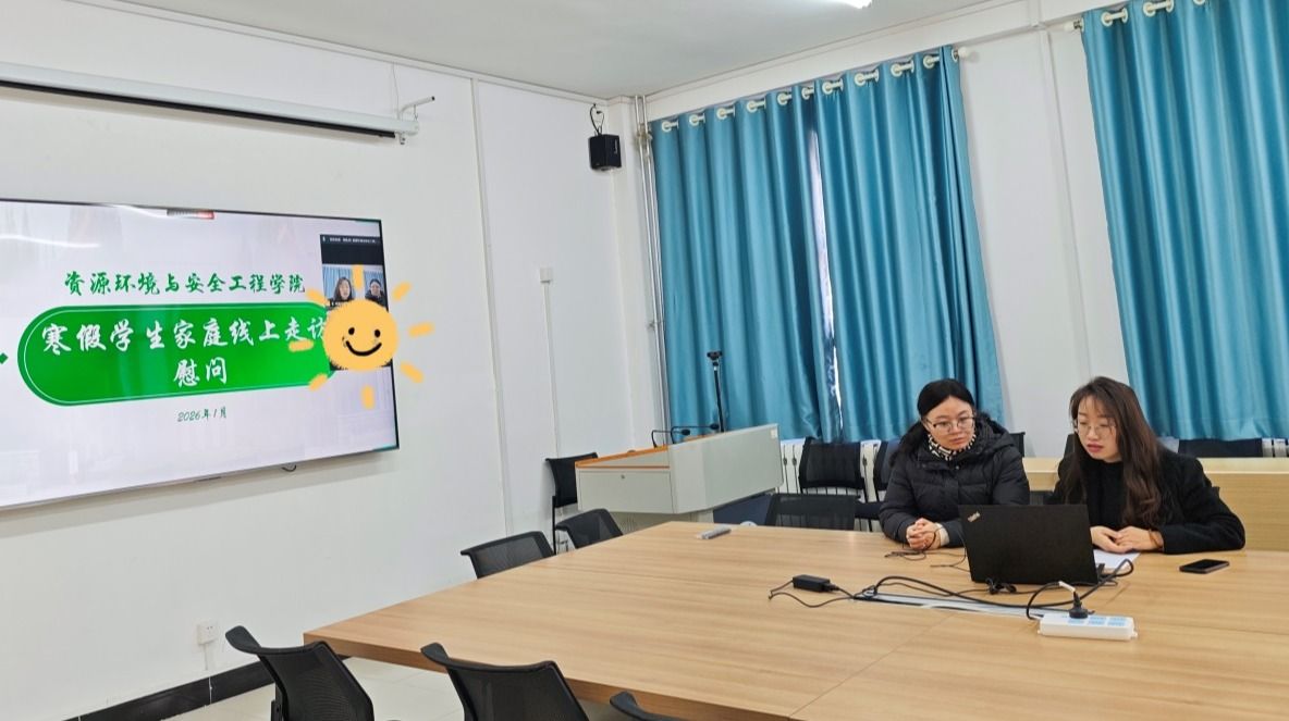 为深入落实立德树人根本任务,巩固家校协同育人机制,将学校关怀精准送达学生家庭,1月23日起,资源环境与安全工程学院组织开展2026年寒假“情暖寒冬,共育未来”主题线上家访慰问活动。学院党委副书记李芬带队,学院辅导员姬晴晴、贾艳丽、刘瑞、佘文萱分组通过视频形式,面向家庭经济困难、学业困难及重点关注学生群体开展家访。