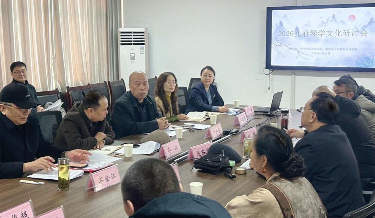 1月24日,2026年孔府琴学文化研讨会暨孔子古琴音乐雅集在音乐学院拉开帷幕。本次活动由音乐学院联合曲阜孔子书院礼乐传习所主办、孔子艺术家协会协办、山东省礼乐文化研究育人推广中心与箫韶琴苑承办。来自多所高校、科研院所的礼乐文化专家、古琴艺术从业者及学院师生代表共聚一堂,以琴会友、以学促研,共同探索古琴文化在当代的传承与发展之路。