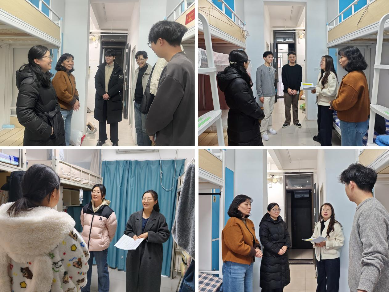 走访中,学院领导与同学们亲切交流,询问同学们的假期生活、返校行程及返校后的适应情况,倾听大家在学习、生活、科研、就业等方面的困惑与诉求,鼓励大家尽快调整作息节奏,科学制定新学期目标,以饱满的精神状态投入到学习生活中。同时重点检查了宿舍内用电安全、消防设施、门窗锁具等情况,严厉杜绝违规用电、私拉乱接、存放危险物品等行为,提醒同学们要提高安全防范意识,养成良好的生活习惯,共同营造安全、整洁、和谐的宿舍环境。