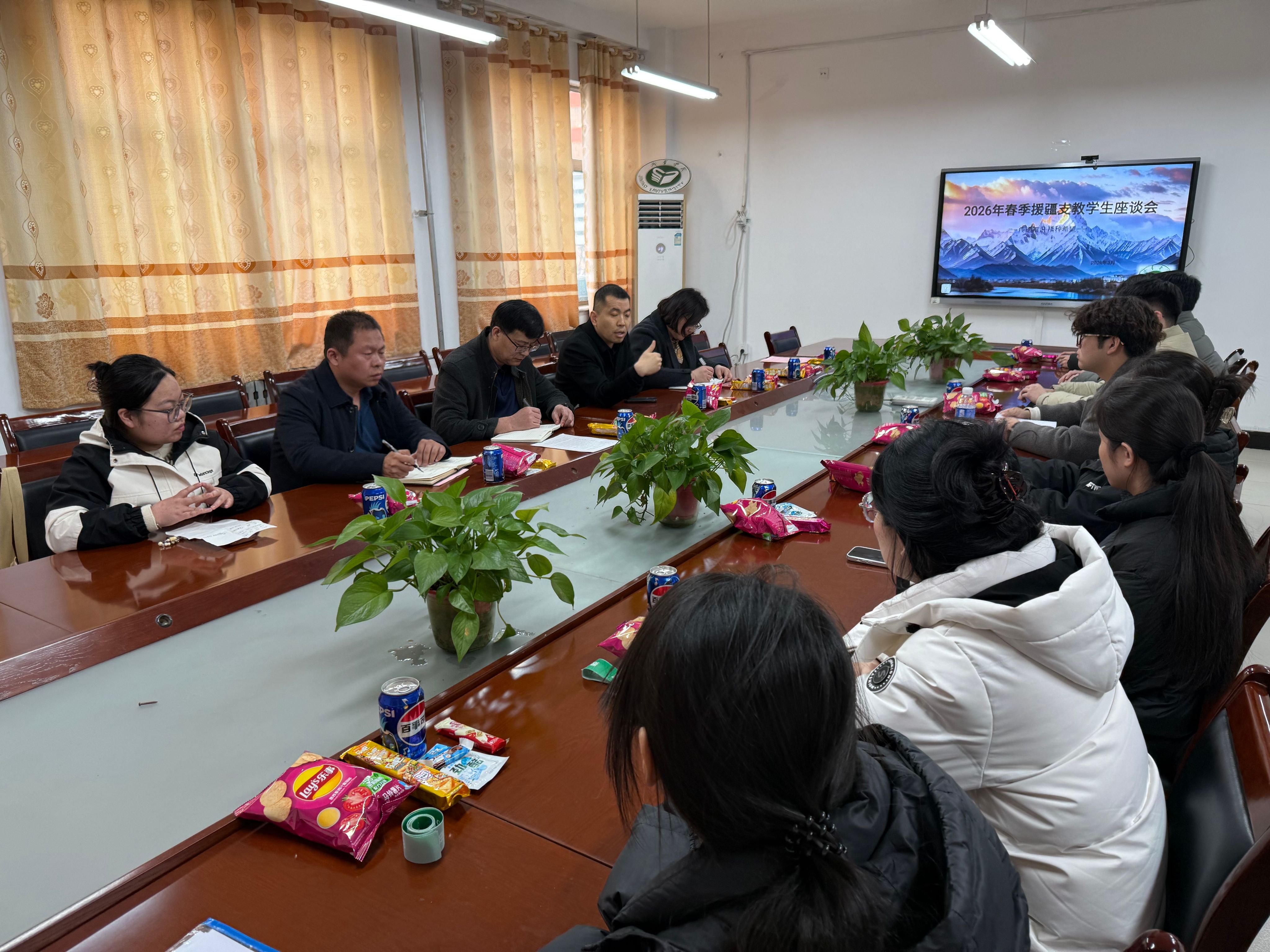 3月9日下午,数学与大数据学院在8号楼213会议室召开2026年春季援疆支教学生座谈会。学院党委书记李洪波、院长刘军、党委副书记张长茂、副院长申莹、团委书记陈轶洋出席,上届支教团优秀代表袁林霞、8名2023级数学与应用数学(师范类)援疆学生及师生代表参会,共话支教使命、明确工作要求。