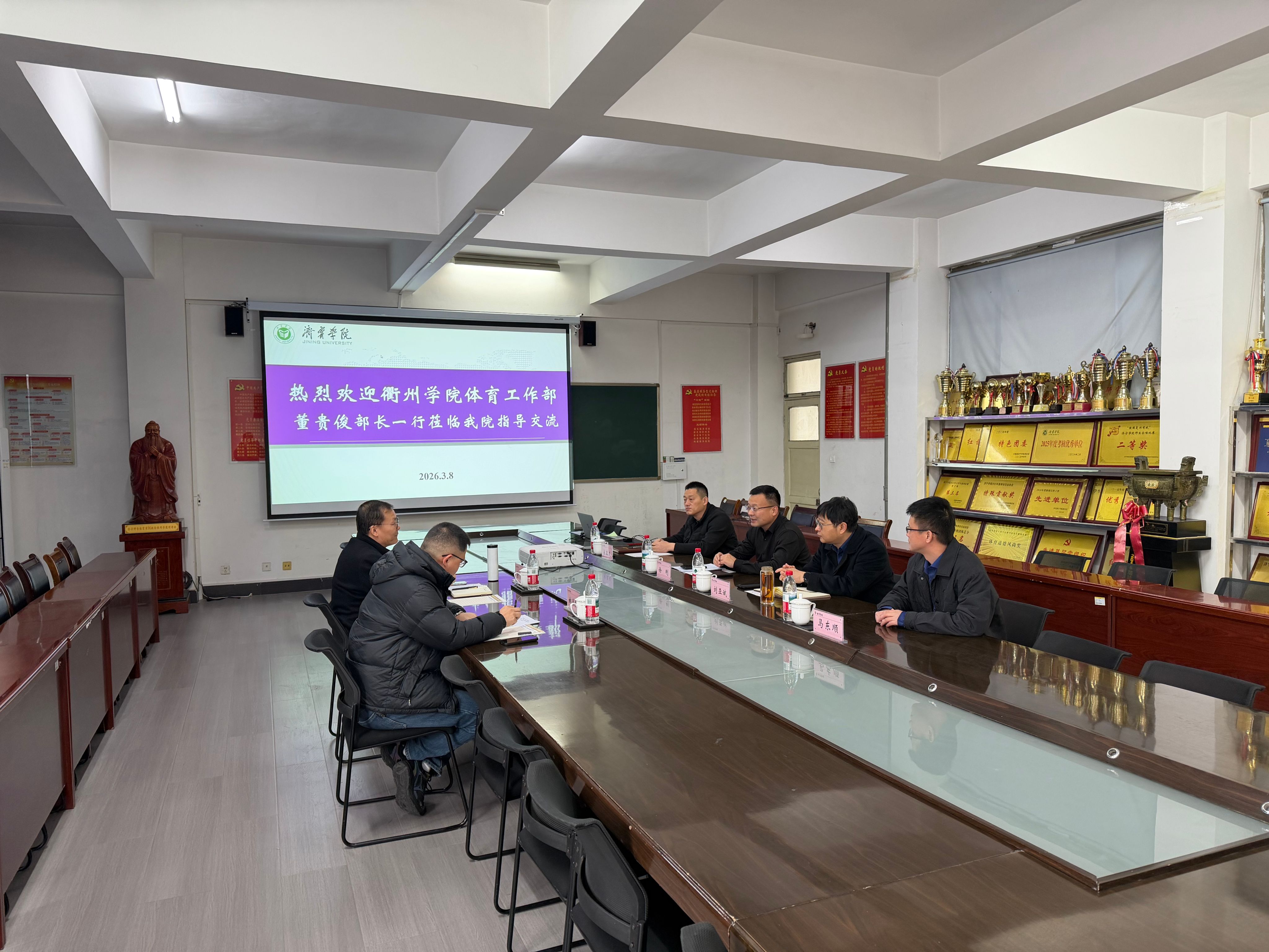 3月8日,衢州学院体育工作部部长董贵俊、办公室主任姚远然一行来我校体育学院开展考察交流。学校人事处处长徐刚,体育学院党委书记刘亚斌、副院长宋正义,办公室主任马东顺参加座谈会。