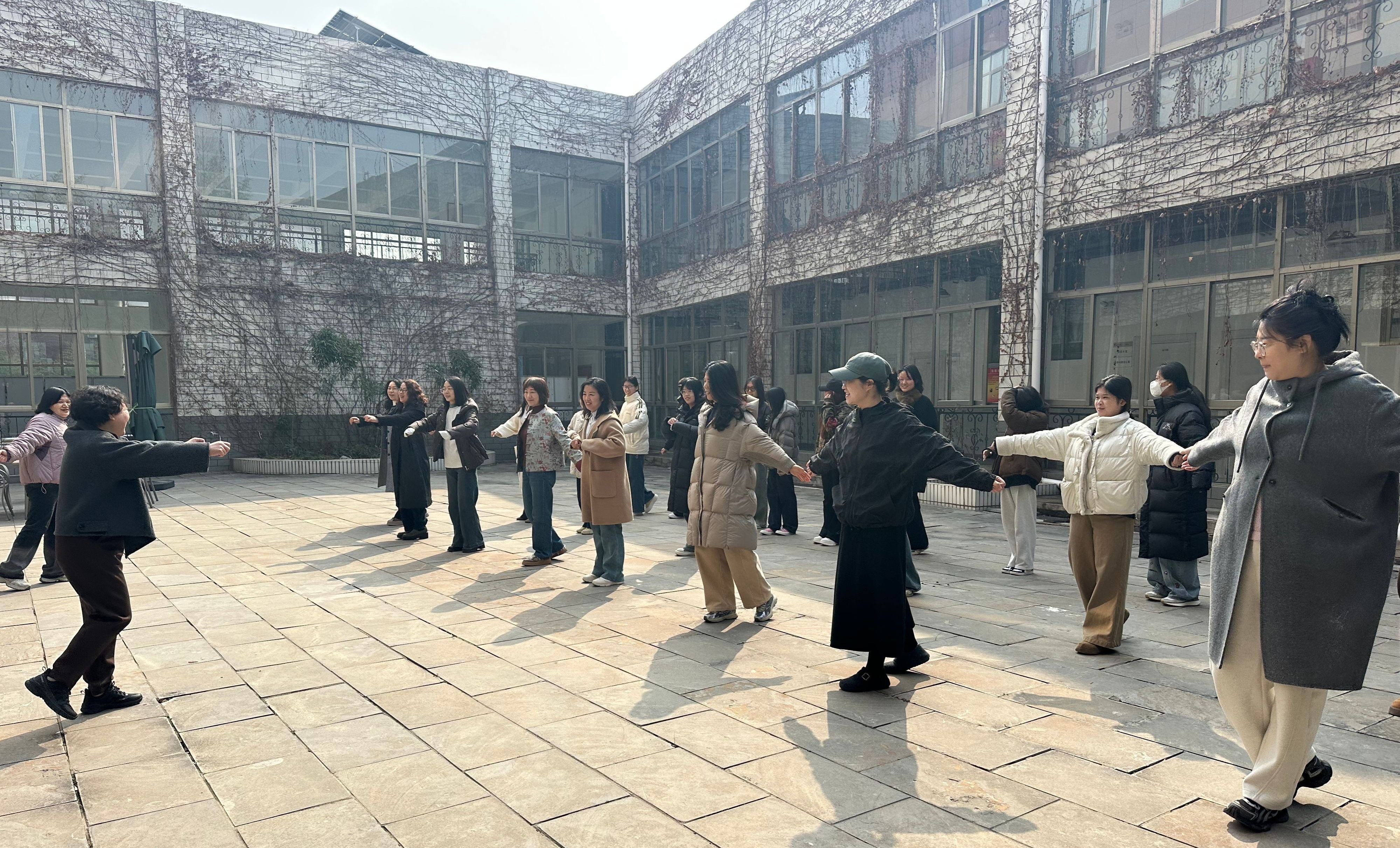 活动当天,春意盎然的小花园内气氛热烈。伴随着欢快动感的音乐,女职工们身着轻便服装,精神饱满地投入到舞蹈中。大家动作整齐划一,步伐轻盈灵动,时而舒展肢体,时而旋转跳跃,展现出美术学院教师特有的艺术风采与蓬勃朝气。现场欢声笑语不断,大家在运动中释放工作压力,在互动中增进彼此情谊,充分诠释了“快乐工作、健康生活”的理念。
