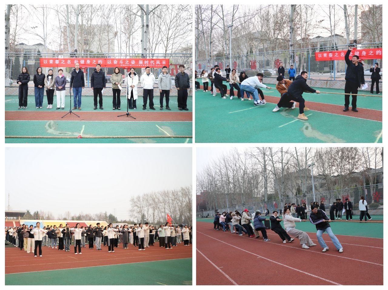 仪式上,杜鹃宣读了《2026年师生体质提升赋能行动倡议书》。随后,与会领导老师与同学们一同通过“AI体育云”参与“阳光跑”热身活动,并举行了师生及班级拔河友谊赛,现场气氛热烈融洽。首场“活力同心圆”集体热身活动同步开展,300余名师生在欢快的音乐声中舒展肢体,尽情释放活力。活动期间,操场上还开展了毽球、跳绳等多项趣味体育活动,进一步丰富了活动的内容与形式。
