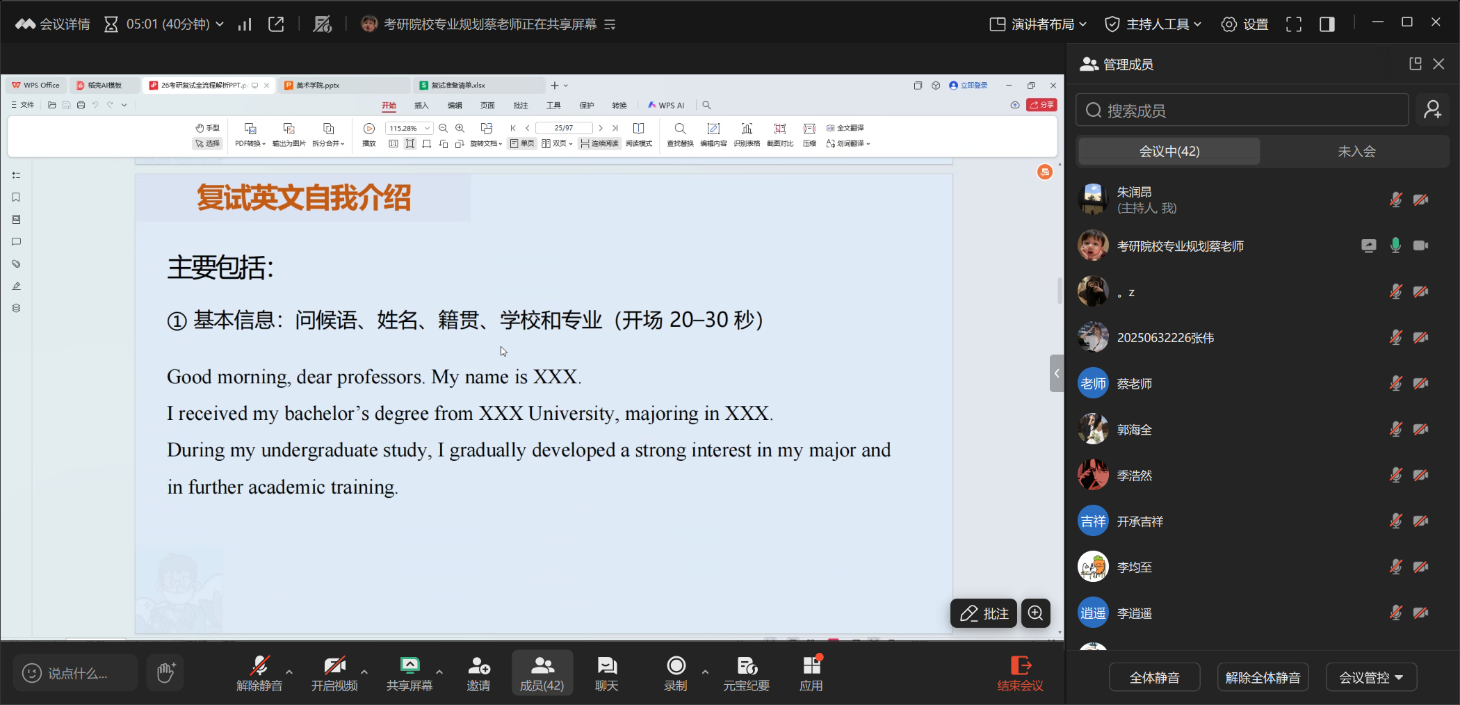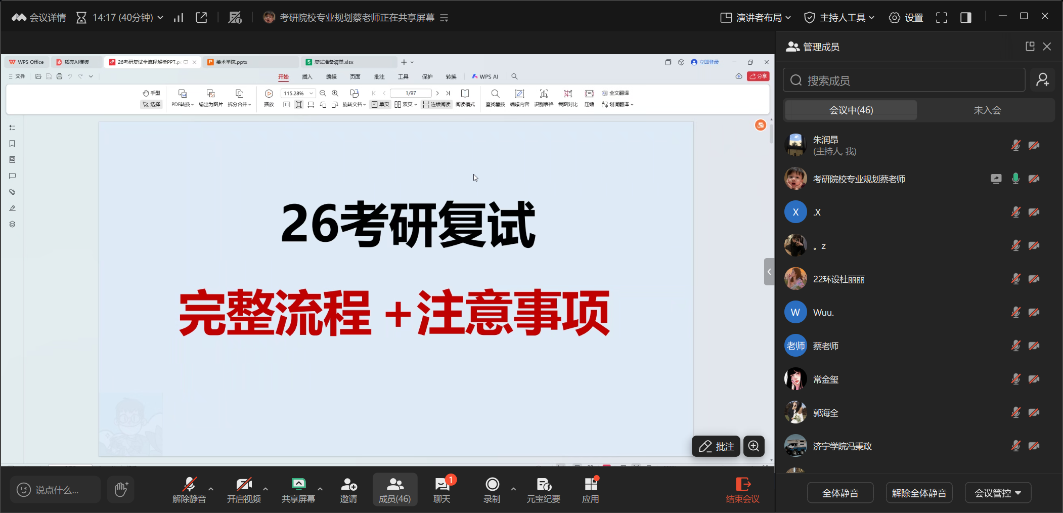会上,蔡勇结合美术类专业的特殊性,围绕复试流程、作品集准备、专业面试技巧、调剂策略等核心环节进行了系统讲解。他通过翔实的数据与生动的案例,深入剖析了美术类研究生复试的考核重点与常见误区,并为同学们提供了极具针对性的备考建议与策略指导。在互动答疑环节,蔡勇老师就同学们关心的线上复试注意事项、研究方向陈述、导师联系沟通等问题进行了细致解答。
