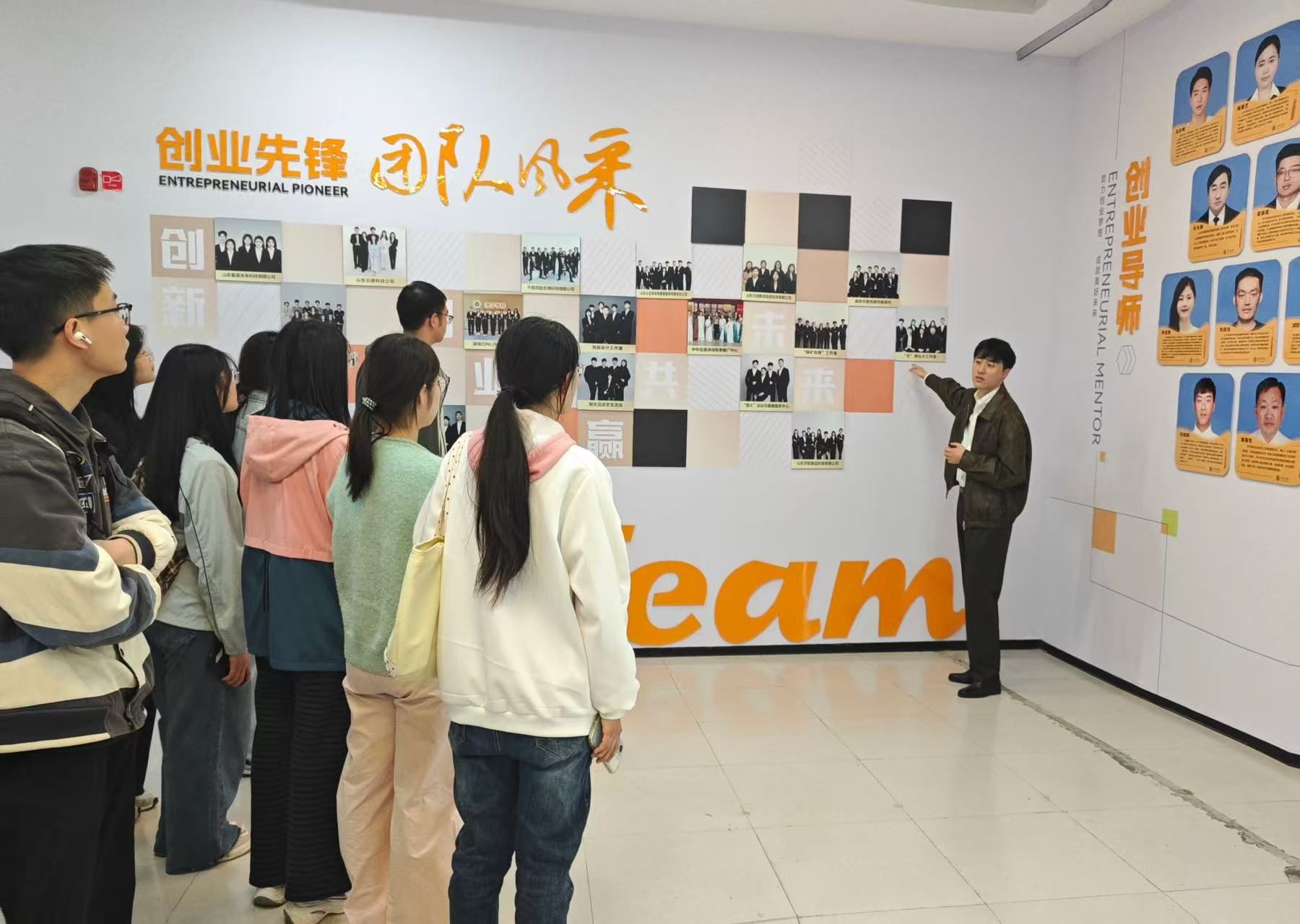 李尊首先对我校首届创业班的顺利开班表示祝贺,对同学们积极投身创业的热情给予充分肯定。并对创业班的同学们提出三方面期望:一是希望同学们借助创业班这个平台提升自身的创业思维和素养,利用所学知识和能力更好地就业、学习和生活。二是希望全体学员在学习期间端正学习态度,严守班级纪律,积极参与各项实践和团队活动。三是多学习和了解社会、学校政策和资源,争取利用现有资源将优秀项目落地生根、成长壮大。随后,冯钦帝作为班主任带领全体学员实地参观了学校就业创业赋能中心,详细介绍了中心的运营模式、功能分区和各项资源。学员们纷纷表示对学校提供的就业创业支持体系有了更加直观深入的了解,对接下来在创业班的学习实践充满期待。