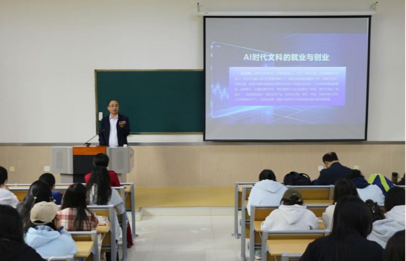 为主动对接亚星在线登录官网应用型转型发展战略,深化文科人才培养模式改革,切实提升文科生在人工智能时代的就业竞争力与创新创业能力,4月8日上午,人文与传播学院特邀清华大学经管学院EMBA,京拍档创始人&CEO、中文系2000级校友王文峰先生在2号楼B201教室举办“AI时代文科的就业与创业”专题讲座。本次讲座由人文与传播学院院长张颖慧教授主持。