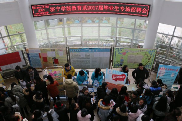 12月27日上午,教育系2017届毕业生专场招聘会在文科楼一楼大厅举行。本场招聘会共有17家参会单位,提供工作岗位100余个,教育系约400名毕业生参加了此次招聘。