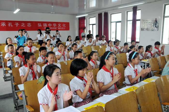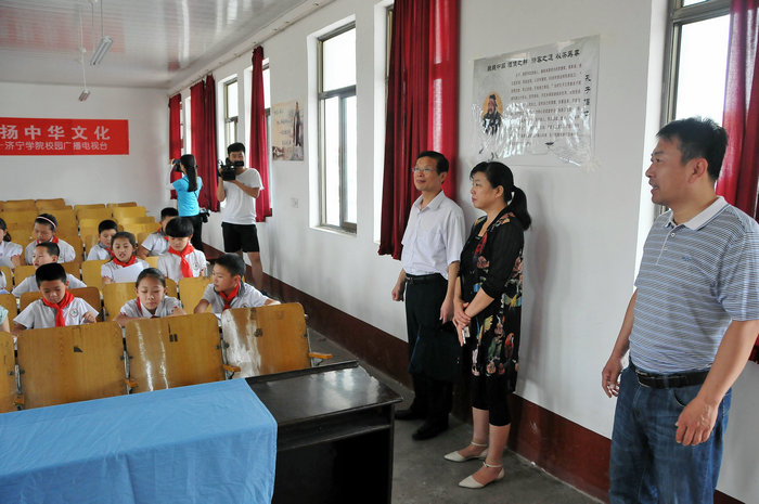 为深入贯彻党的十八大和十八届历次全会精神,强化党的群众路线教育实践活动,服务农村文化建设,浓郁乡村文化氛围,大力推进农村精神文明建设,满足广大农民的精神文化生活需求。7月9日,在校党委的大力支持下,党委宣传部组织我校校园广播电视台“圣地之声”文化普及志愿队赴曲阜市陵城镇辛庄小学,开展了大学生暑期“三下乡”社会实践活动,志愿者们在该校进行了孔孟文化宣讲。