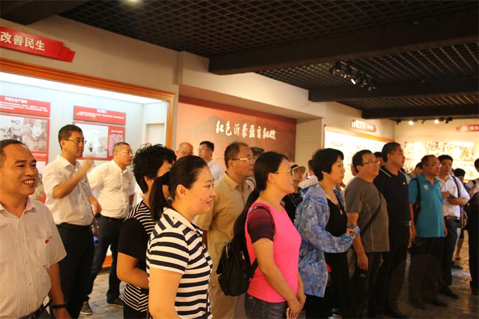 大家首先在沂南县马牧池乡常山庄沂蒙红嫂纪念馆,参观了红色沂蒙山、红嫂原型明德英、沂蒙母亲王换于、沂蒙大姐李桂芳、拥军妈妈胡玉萍、沂蒙红嫂群体、永远跟党走等重要展室和拥军支前情景再现馆,聆听了“红嫂第一人”明德英乳汁救伤员,“沂蒙母亲”王换于保护抢救伤员、创办战时托儿所、抚养42名革命后代,“沂蒙大姐”李桂芳带领32名姐妹支援孟良崮、汶河水中勇架人体桥,爱国拥军好妈妈胡玉萍27年如一日为“雷锋团”养猪、靠捡废品和省吃俭用捐钱捐物15万元等感人事迹,在纪念馆报告厅,共同观看了“沂蒙母亲”王换于的孙女于爱梅专题报告。学员们更加深刻地了解了沂蒙红嫂这个伟大的英雄群体。在党的领导下,送子参军、送夫支前,缝军衣、做军鞋、抬担架、送军粮,舍生忘死救伤员,不遗余力抚养革命后代,为抗战胜利和新中国成立做出了无私奉献和巨大牺牲,充分体现了沂蒙人民“最后一口粮当军粮,最后一块布做军装,最后一个儿子送战场”的革命大爱情怀。