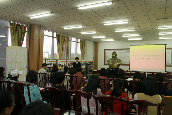 我校孔子学堂是全省29个率先批准建立的高校孔子学堂之一。“大学生国学经典诵读班”是“孔子学堂”的主要活动内容之一。本期读诵的主要篇目是《论语》,在接下来为期30天的学习时间里,全体学员将通过集体诵读、专家辅导、主题实践教学、交流研讨等形式,诵读《论语》等传统经典著作,学习优秀传统文化,以点带面,进一步营造我校传统文化育人环境。