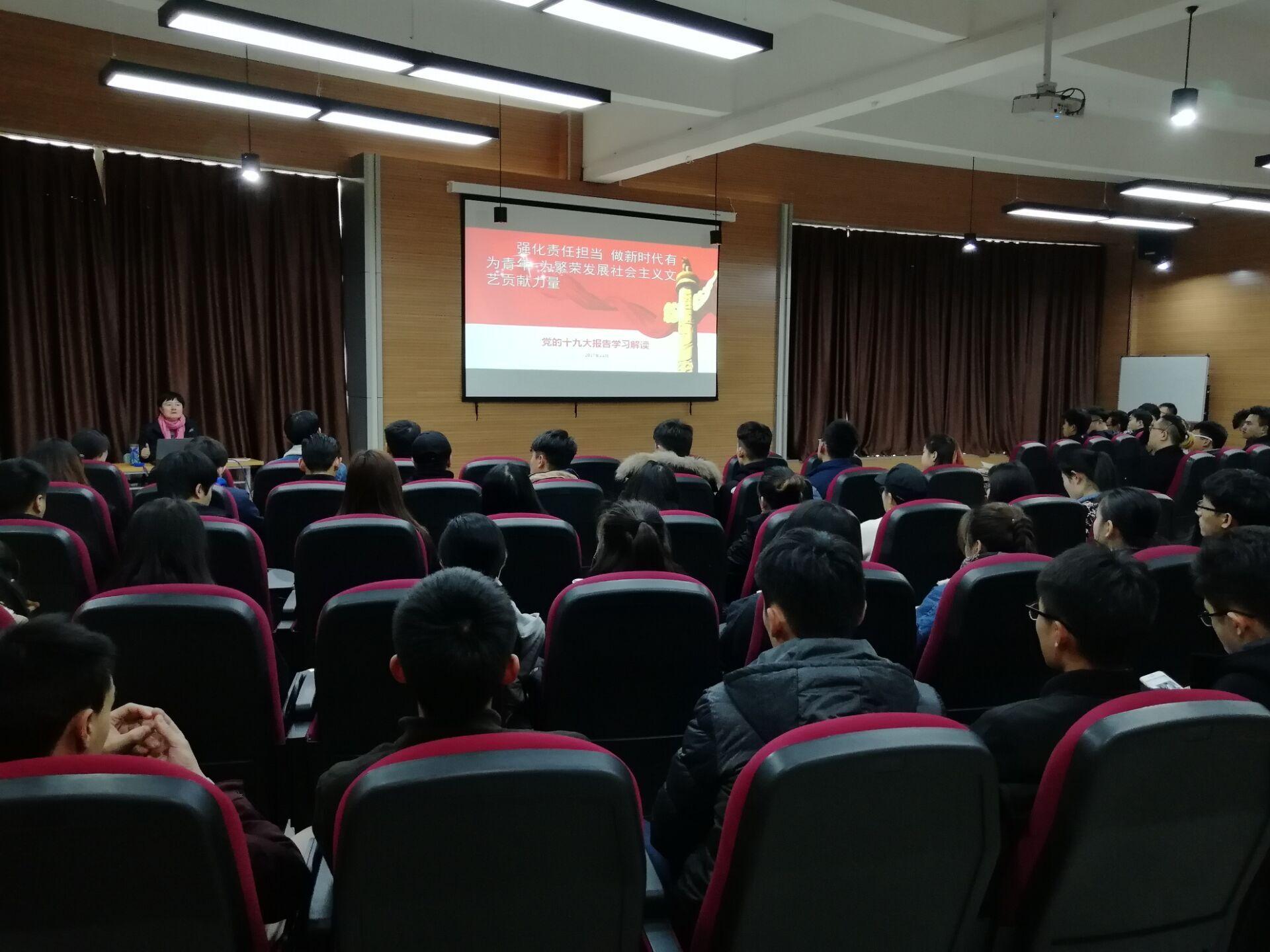 根据学校党委部署安排,美术系党总支积极组织开展党的十九大精神学习解读宣讲系列活动。校纪委副书记李传伟、校团委书记马新蕾到我系联系班级宣讲十九大精神。美术系党总支指导系教工、学生党支部分别开展“学报告、谈体会、当先锋”主题党日活动。并结合专业特色,以专题辅导、学习研讨交流、弘扬中华优秀传统文化主题展览和相关活动等,组织开展形式多样的学习宣讲教育活动。