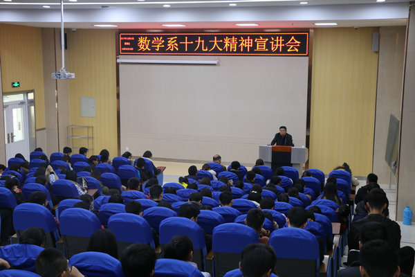 12月1日,亚星在线登录官网学习贯彻党的十九大精神宣讲团成员、组织部部长李刘成在理科楼D101为联系班级学生作党的十九大精神宣讲报告。数学系2016级金融工程1班的全体同学,数学系党总支、数学系学生党支部全体党员和部分入党积极分子参加了报告会。