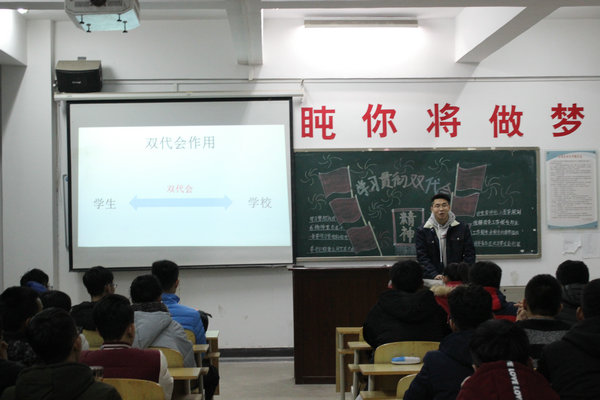 主题团日活动中,曹宁等五位团学“双代会”代表分别从领导讲话、会议工作报告、小组讨论、会议提案、会议召开的意义与作用等方面向同学们作了解读,并谈了自己的体会,带领同学们重点学习了校党委书记郁章玉、党委副书记马恩在会议上的讲话,以及校团委和学生会的工作报告,号召广大青年要坚定不移跟党走,争做有理想,有担当,有品德的新时代青年。