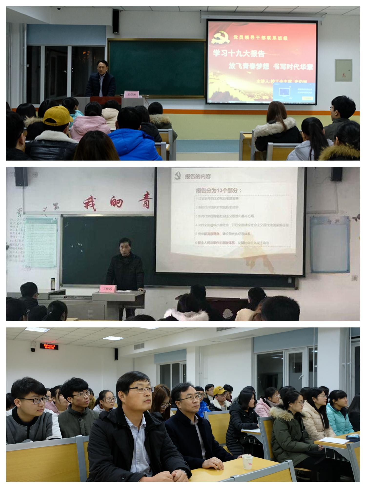 近日,校工会主席史仍洲、文化传播系主任王传武分别为联系班级学生作了党的十九大精神宣讲报告。