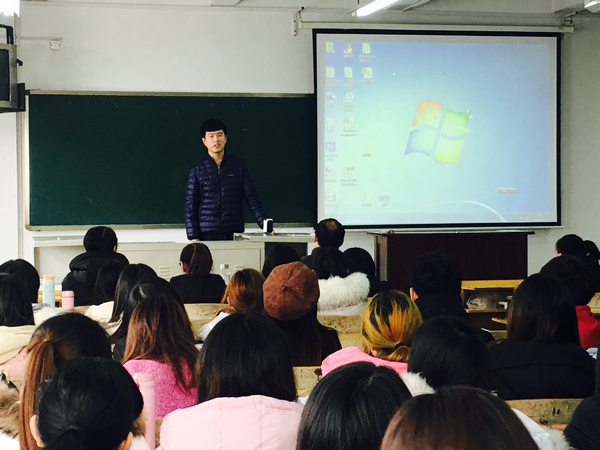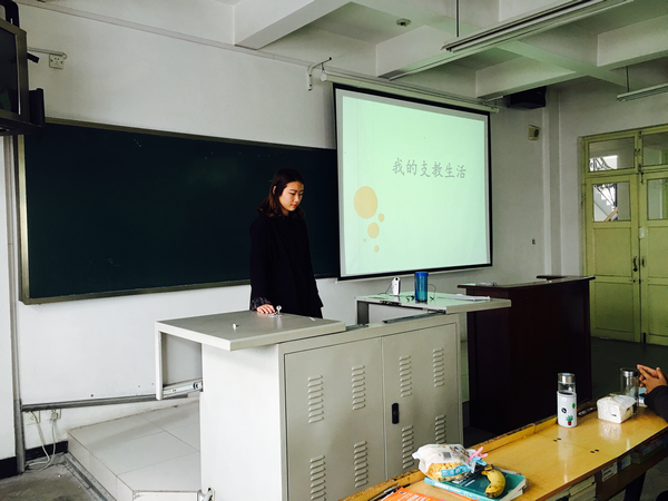 闫彩霞就支教意义、支教内容、支教要求以及指导老师分配等作了安排和部署。随后,五位圆满完成2017年春季实习支教的优秀学生,用丰富的图片、幽默的语言,从不同的侧面向同学们介绍了他们的支教生活,并和同学们分享了他们实习支教的经验、教训,以及收获和感悟。
