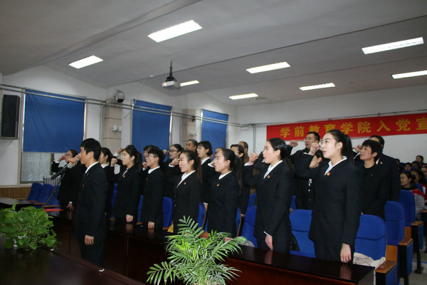 1月12日下午,学前教育学院学术报告厅内,鲜红的党旗,突出醒目,入党宣誓仪式在这里隆重举行。学前教育学院全体党员、入党积极分子参加了宣誓仪式。