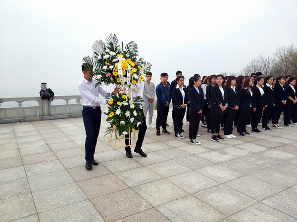 活动第一项是向革命先烈敬献花篮,两名参祭人员恭敬端持花篮至纪念碑下。然后,全体参祭人员向革命英烈默哀一分钟。接下来,入党积极分子步硕同学作代表发言。最后,孔波同志引用习近平总书记在十九大报告中对青年一代的寄语勉励同学们一定要牢记总书记的嘱托,坚定理想信念,志存高远,脚踏实地,勇做时代的弄潮儿,在实现中国梦的生动实践中放飞青春梦想,在为人民利益的不懈奋斗中书写人生华章,展现新时代青年学子的风采。